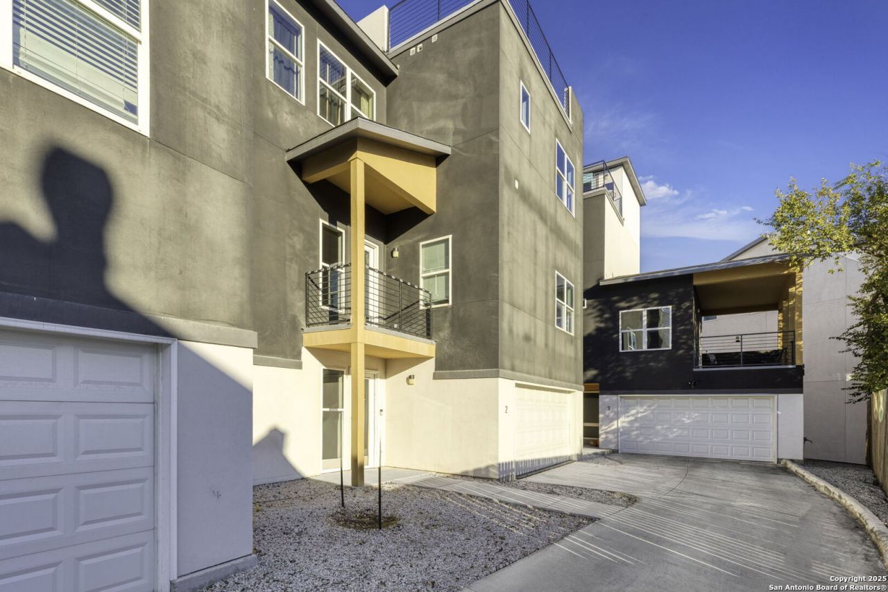 Live at the center of it all in this jaw-dropping urban luxury home-complete with your own Private ROOFTOP terrace boasting 360 skyline views of Downtown San Antonio. Modern, sleek, and unforgettable, this 3 bed / 3 bath multi-level stunner is the ultimate city retreat. Step inside to a gourmet island kitchen adorned with sleek granite countertops, custom cabinetry, modern stainless steel appliances, and high-end gas cooking-a chefs dream. Enjoy rich wood flooring, soaring 10-foot ceilings, expansive custom windows, and 2 balconies that fill the home with natural light. Thoughtfully designed with energy-efficient construction, this home also includes a spacious attached 2-car garage and premium contemporary finishes throughout; washer and dryer will convey. Located just south of San Antonio College in the highly coveted Historic Tobin Hill District, youll live within one mile of The Pearl, the San Antonio River Walk, Tobin Center for the Performing Arts, San Pedro Springs Park, The Alamo, and a curated mix of upscale dining, shopping, and culture. Urban sophistication, unbeatable walkability, and iconic skyline views-this is the heart of San Antonio at your door!