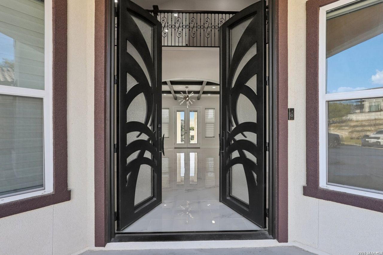 Welcome to luxury living in the prestigious Canyons at Scenic Loop. This stunning 5,456 sq ft modern Mediterranean estate is thoughtfully designed for elegance, comfort, and entertaining - all set against breathtaking hill country views. From the moment you arrive, the grand facade and expansive driveway make a commanding first impression. Inside, soaring ceilings, a sweeping curved staircase, and marble-look flooring create a dramatic yet inviting entry. The open-concept layout flows seamlessly into spacious living and dining areas, anchored by designer lighting and refined architectural details. The chefs kitchen is a showstopper - featuring an oversized waterfall island, custom wood cabinetry, premium appliances, and a statement range hood - perfect for hosting family and guests. Multiple living spaces include a dedicated game room, a private office, and generous common areas designed for modern lifestyles. Retreat to the luxurious primary suite with serene views, spa-inspired bath, and oversized walk-in closet. Three additional bedrooms and three full bathrooms offer comfort and privacy for family or guests. Step outside to enjoy unobstructed hill country views and endless possibilities for outdoor living. The adjacent lot is also available, offering the rare chance to expand your estate or secure added privacy.MLS #: 1908089 Located in one of San Antonios most desirable gated communities, just minutes from top schools, shopping, and dining - this home delivers sophistication, space, and scenery in perfect harmony. Modern Mediterranean. Hill Country Views. Unmatched Lifestyle.