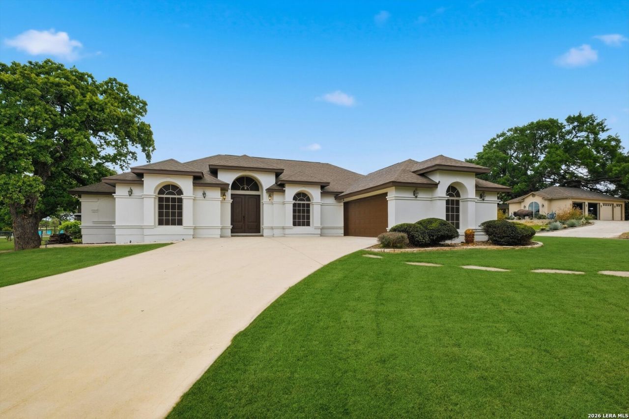 Welcome to this beautifully situated 3-bedroom, 2.5-bath home in Devine, offering the perfect blend of comfort, space, and scenic views. Nestled on a desirable corner lot along the golf course, this property provides a peaceful setting. Step inside to discover a bright and inviting open floor plan, ideal for both everyday living and entertaining. The spacious layout seamlessly connects the main living areas, creating a natural flow throughout the home. Outside, youll appreciate the added convenience of two separate driveways and a 2-car garage-perfect for extra parking, guests, or recreational vehicles. The corner lot enhances curb appeal while offering additional outdoor space to enjoy. Whether youre relaxing with golf course views or hosting family and friends, this home delivers a unique opportunity to enjoy comfort and convenience in a great location.