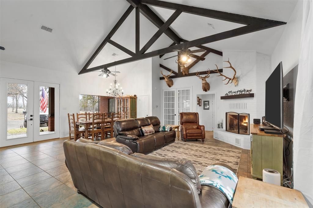 Ag-Exempt and Peaceful! Step through the gates and leave the world behind—this stunning, park-like property welcomes you into your own private paradise. Surrounded by natural beauty and thoughtfully designed spaces, this estate offers both tranquility and exceptional functionality.The main residence opens to a spacious, light-filled layout where the living room, dining area, and kitchen flow seamlessly together—perfect for both everyday living and entertaining. The chef’s kitchen is truly the heart of the home, featuring an oversized island, dual gas cooktops, double built-in ovens, and ample space for a double refrigerator, making it as impressive as it is practical. Designed with privacy in mind, the split-bedroom floor plan offers a luxurious retreat in the primary suite. The master bedroom leads into a spa-inspired bathroom complete with a relaxing garden tub, an expansive walk-through shower, and the convenience of a washer and dryer located within the master closet. On the opposite side of the home, a second living area creates the perfect flex space for a game room, media room, or additional lounge. Two generously sized bedrooms are tucked away here, connected by a well-appointed Jack-and-Jill bathroom—ideal for family or guests. Adding even more value and versatility, the guest house is a well-built metal structure featuring a large, fully heated and cooled shop—perfect for hobbies, storage, or a home-based business. An expansive covered porch provides the ideal space to unwind or entertain while enjoying the peaceful surroundings. Two natural springs supply water to both homes, complemented by a reverse osmosis system and an additional rainwater gutter catch system, providing clean, reliable, and sustainable water—a rare feature for properties of this caliber.