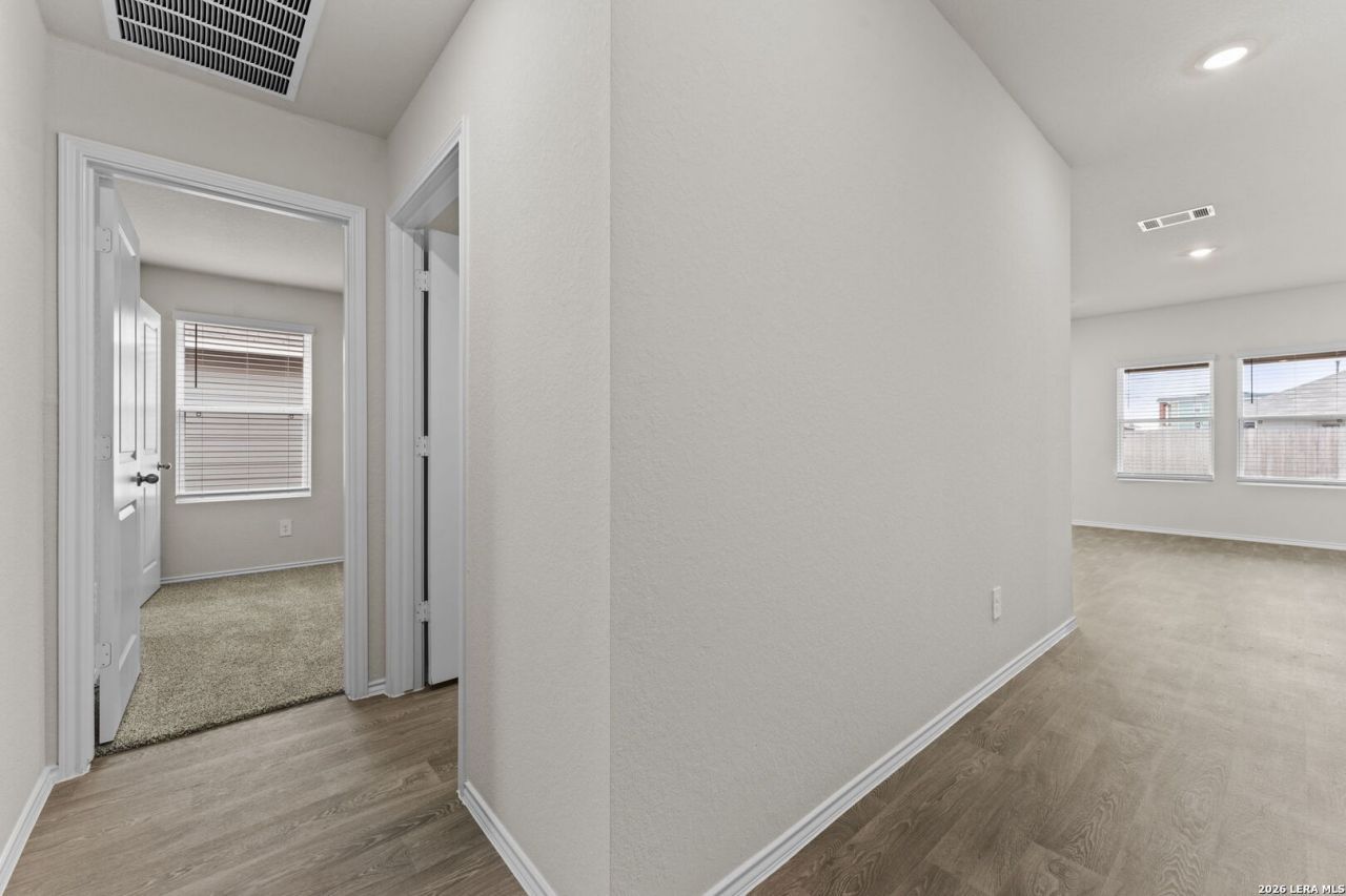 The Bellvue is one of our one-story floorplans featured at our Navarro Fields community in Seguin, Texas. Featuring 3 bedrooms and 2 bathrooms, this home also includes a 2-car garage all within 1,404 square feet of living space. When you enter the home from the covered front porch, you will find a short hallway that leads to the secondary bedrooms and bathroom. Bathroom 2 includes a tub/shower combination, and both bedrooms include a walk closet with shelving. *Seller is willing to assist with closing costs or a rate buy-down through preferred lender with an acceptable offer.