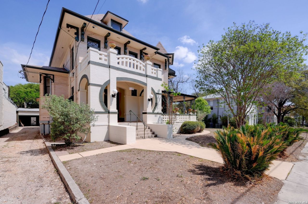 Welcome to the relaunch of 109 E Woodlawn! This 1907 Victorian Home in the heart of Monte Vista presents an exceptional opportunity for short-term rental investment thanks to its unbeatable location-just steps from La Fonda on Main and surrounded by popular restaurants, bars, local shops and the Pearl District. The property also offers wonderful potential as a primary residence, featuring a spacious backyard with ample room to add a pool and create your own private retreat, plus the proximity to the highly rated Keystone School. This stunning Victorian home offers 4,820 square feet of timeless character, featuring 5 bedrooms and 4 bathrooms, all situated on a spacious third-acre lot. From the moment you step inside, youre welcomed by an elegant entry adorned with original stained glass, beautifully handcrafted millwork, parquet flooring, and a striking architectural grand staircase. The rich woodwork continues into the living room, highlighted by original stained glass windows and a classic fireplace. French glass pocket doors lead into the formal dining room, where the history of the home truly shines-showcasing intricate wood detailing, a coffered ceiling, a custom mural, and a built-in buffet. Adjacent to the dining room is what was traditionally a conservatory, originally designed to ventilate the home and nurture plant life, adding to the homes historic charm. The main level also features a kitchen, full bathroom, and a versatile bonus room ideal for a bedroom or office, along with a hidden bookshelf door that opens to a spacious storage closet. Upstairs, the primary suite is a private retreat, complete with original built-in cabinetry, a sitting area, and an en-suite bath. Step out onto the balcony to take in views of the downtown San Antonio skyline. The upper level also includes three additional bedrooms, two bathrooms, and a bonus room that opens to a second conservatory space. Recent updates include a fully repainted exterior (preserving the original brick), fresh interior paint throughout, four HVAC units with new ductwork, and updated electrical systems-blending modern comfort with historic elegance.