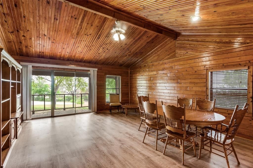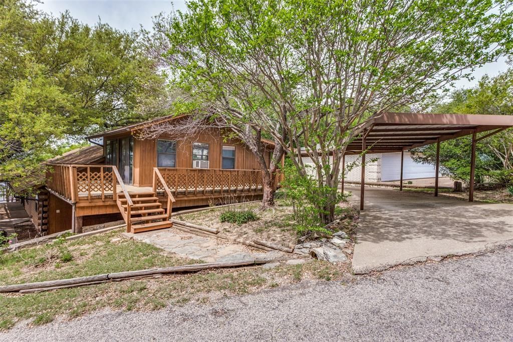 Tucked away on a rare double lot just moments from the lake in Granbury, this property offers a unique opportunity to create your own peaceful retreat surrounded by nature. With mature trees, river views from the porch, and a quiet Northside setting, the lifestyle here is hard to replicate.Inside, the main living and dining space is filled with character, featuring vaulted ceilings, rich wood paneling, and abundant natural light. The open-concept layout and vinyl plank flooring create a comfortable, functional space with plenty of potential to make it your own.The main home includes 3 bedrooms and 2 bathrooms, with a practical layout and laundry conveniently located in the kitchen. Upstairs, a separate room and full bath with a private entrance and window unit offers flexible use — ideal for guests or a home office! Located just approximately 5 miles from the Granbury Square and close to everyday conveniences like HEB, dining, and shopping, this home offers the perfect balance of privacy and accessibility.Additional features include covered parking on both levels and a storage area with electricity in the carport, perfect for tools, hobbies, or extra storage.Whether you’re looking for a weekend getaway, investment opportunity, or a home to update and personalize, this property stands out for its rare lot size, peaceful surroundings, and proximity to the lake.