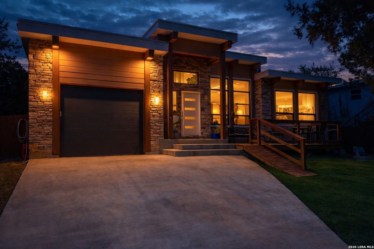 Step into this stunning 3-bedroom, 2-bath mid-century modern home in the heart of Canyon Lake, where clean lines, bright spaces, and timeless style come together beautifully. This one-owner property has been exceptionally maintained and feels like new from the moment you walk in. Inside, youll find an inviting bright and airy interior with high ceilings, recessed lighting, and walls of natural light streaming through every room. The open floor plan features low maintenance tile flooring throughout, creating a seamless flow ideal for both everyday living and entertaining. The sleek island kitchen is a standout, complete with quartz countertops, ample cabinetry, and modern finishes perfect for cooking or gathering with friends and family. Outside, enjoy a roomy covered back patio in the spacious fenced-in backyard with a wood privacy fence, offering plenty of room to relax, play, or garden. The privacy fence and decking are freshly stained. Unwind in the included hot tub and ask about the select furniture pieces that can convey with the sale. Wired for a generator (portable generator included) providing piece of mind and is also ready for a water softener. Washer, dryer, refrigerator, water filtration station and Amish furniture custom swivel bar stools stay. An attached one car garage with keypad and remote offers great functionality. This move-in-ready gem blends style, comfort, and convenience-an ideal opportunity to own a beautifully maintained and unique home in a highly sought-after Canyon Lake location. Only 1.5 miles from public boat ramp 5 and the neighborhood amenities which include a swimming pool, club house, tennis and pickleball courts, pic-nic area with grills and tables, and a playground. Imagine being able to take a short walk or drive anytime you want to enjoy the beautiful blue waters of Canyon Lake. The ever-popular Comal Park on the lake is just 1.2 miles away and this homes central location makes for easy access into the nearby cities of New Braunfels and San Antonio. Dont hesitate, come out and see this special home today!