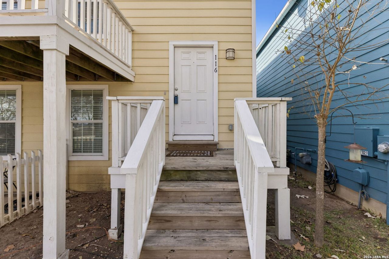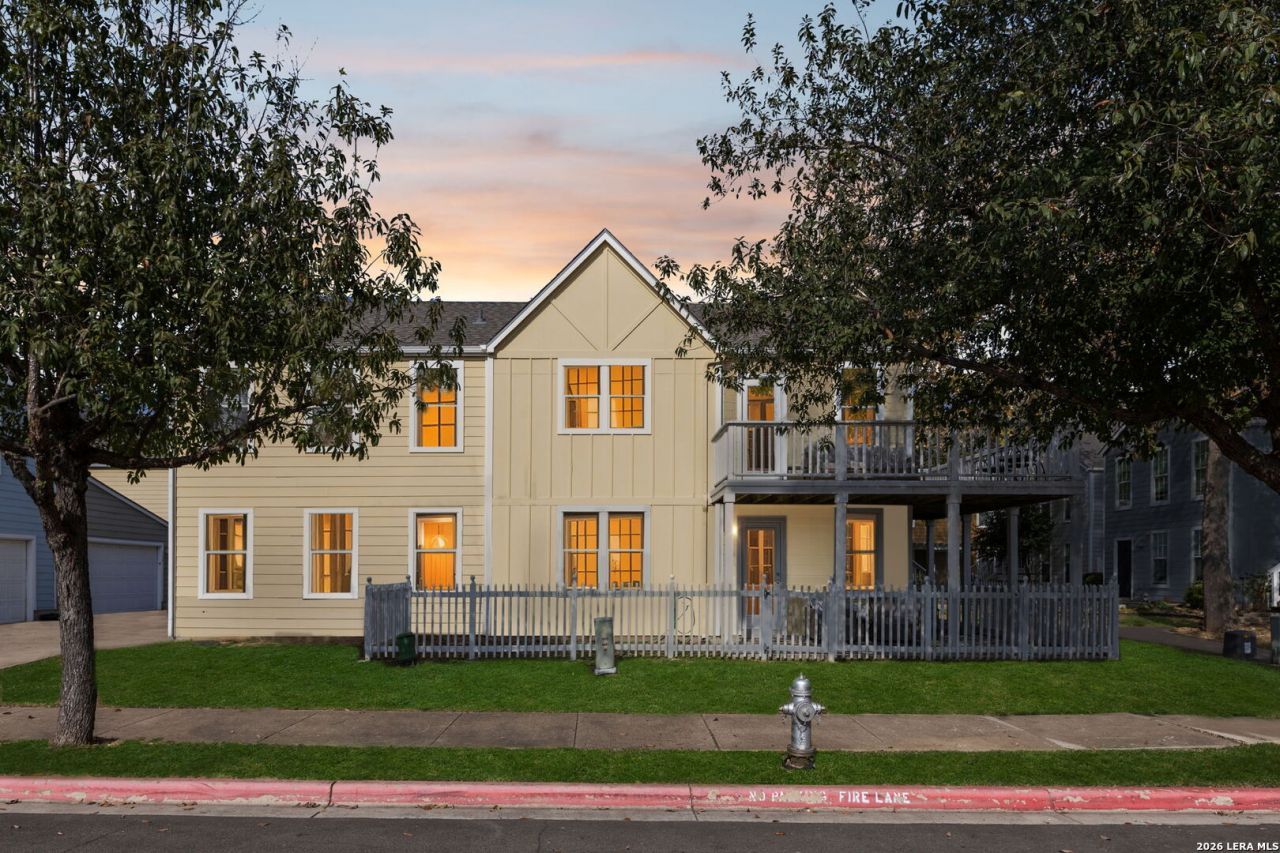 Welcome to Blanco River Village...an idyllic, storybook-style community with cheerful, colorful homes, wide front porches, and a beautifully maintained common area where neighbors gather, stroll, walk their dogs, and enjoy a true sense of community. This home offers an excellent opportunity for full-time residents or is a smart investment option for college students, thanks to its flexible layout and private spaces. With 3 bedrooms, 3 full baths, and multiple living areas, its ideal for a family, roommates, or even an in-law setup. Two spacious primary suites make this floor plan especially versatile. The downstairs suite features a private entrance, its own living area, a covered wraparound porch with recent concrete extension, and a small, fenced lawn. It is perfect for guests, multigenerational living, or added rental income potential. Upstairs, youll love the open-concept design with a bright kitchen featuring a new gas range (2024), dishwasher (2023), breakfast bar, and a window over the sink. The kitchen opens to the dining area and an upstairs living space. Also on the second level: the upstairs primary bedroom with an en-suite bath. a secondary bedroom, full bath, and laundry room, Step outside to enjoy a second partially wraparound porch. It is the perfect spot for morning coffee, reading a book, or catching those Hill Country sunsets. Additional highlights include an attached 2-car garage, a charming courtyard, and hard surface flooring throughout (no carpet). The $350/month HOA fee includes exterior maintenance and the roof. Recent upgrades include a new roof (2025), an upgraded HVAC (2024), interior paint (2023), and a new extended concrete patio and updated lighting (2025). This location is hard to beat, situated just steps from the Blanco River, and conveniently close to Texas State University, shopping, restaurants, the outlet mall, and I-35 access in under 10 minutes.