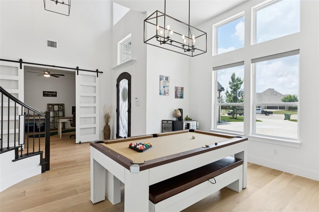 Tucked away at the end of a quiet cul-de-sac in one of Gunter’s most desirable neighborhoods, this elegant home offers a perfect blend of luxury, comfort, and warmth—just steps away from the brand-new Gunter Elementary School. From the moment you enter the grand foyer, you're welcomed by timeless design and thoughtful details. The foyer is flanked by a formal dining room and an elegant home office that can also serve as a 5th bedroom. The spacious downstairs primary suite is a true retreat, featuring a peaceful sitting area, spa-like ensuite bath with dual sinks, a stand-alone soaking tub, extra large shower, and a generous walk-in closet. Located downstairs is a secondary en-suite, perfect for guests or multi-generational living. With 4 bedrooms and 5 bathrooms this home has space for everyone. The generous upstairs living space has a loft game room with a built in study area, a private media room and a Jack and Jill bathroom made for a family. Smart storage solutions abound, including three attics, one of which is walk-in, offering incredible versatility and room to grow. The extended driveway adds functionality and fun, complete with a basketball goal for active afternoons at home. You will appreciate the private outdoor oasis—an extended patio and spacious outdoor living area, ideal for gatherings, grilling, or quiet evenings in the hot tub. The fenced backyard offers open views of the tranquil field behind the home, creating a rare sense of peace and space. A well-placed storage shed keeps things organized while maintaining the clean, expansive feel of the yard. This home has been lovingly cared for, offering beauty, security, and a true sense of community. The appliances, hot tub, and furnished theater room are included!3D tour available online!