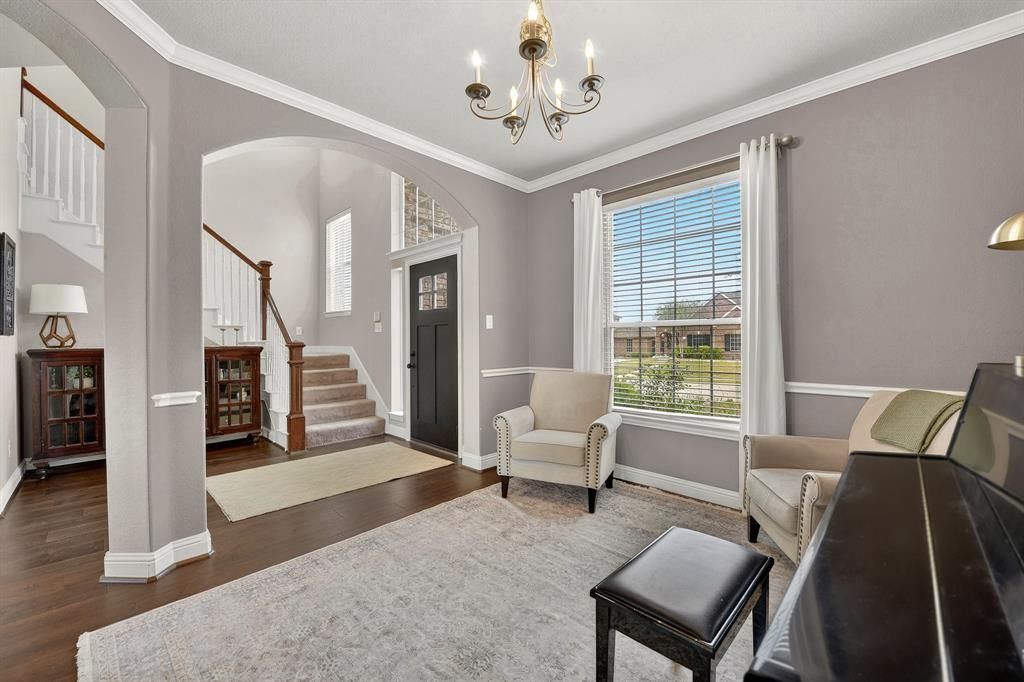 This gorgeous, beautifully maintained corner-lot home welcomes you with timeless charm and thoughtful design, featuring rich wood floors, elegant crown molding, and an inviting layout perfect for everyday living and entertaining. As you step inside, you’re greeted by a stunning formal dining room that flows seamlessly into the spacious kitchen, complete with abundant counter space and a breakfast bar that overlooks both the dining and living areas, creating an open, connected feel. The cozy living room is anchored by a warm fireplace, making it the perfect place to gather, while a convenient guest half bath is tucked downstairs for added functionality. The private primary suite is ideally situated in its own hallway, offering a peaceful retreat with a generously sized bathroom featuring a glass-enclosed shower and a built-in vanity area perfect for getting ready. Upstairs, you’ll find three well-sized bedrooms along with a large game room boasting tall ceilings and a ceiling fan, providing the perfect flex space for entertainment, work, or play. Step outside to enjoy the expansive backyard with lush grass and a concrete patio, ideal for relaxing evenings, weekend gatherings.