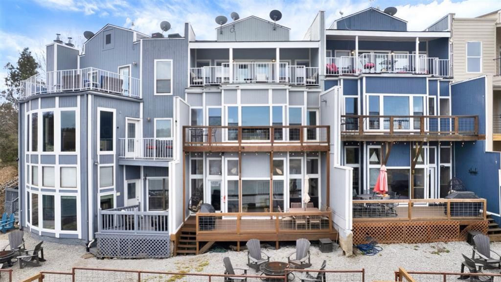 Welcome to this one-of-a-kind home with a charming treehouse-inspired design, offering a perfect blend of adventure, comfort, and lakeside living. Located just one block from Tanglewood Golf Course, this property provides a peaceful retreat while remaining close to dining, shopping, and entertainment. The spacious bunk room, originally the garage, has been transformed into a fun and functional space featuring handcrafted queen-sized wooden tree beds, twin bunk lofts, and a queen sleeper sofa, comfortably accommodating 6 to 8 guests. Enjoy built-in entertainment with a skee-ball table, ESPN basketball arcade, and a Pac-Man-style arcade. The primary suite offers beautiful views of a semi-private 5-acre lake and includes a king bed, leather recliner, twin trundle sleeper, and a private balcony. The en-suite bathroom features dual sinks, a soaking tub, and a separate shower. Upstairs, two additional bedrooms each include a king bed and flat-screen TV, with access to a covered Trex deck overlooking the lake. The main living areas are designed for both comfort and entertaining, featuring a cozy living room with microfiber sectionals, a spacious dining area with a Magnolia oak table for up to 10, and a well-appointed kitchen complete with Frigidaire stainless steel appliances and granite countertops. Outdoor living shines with expansive Trex decking, a high-top dining table, BBQ grill, and a wood-burning fire pit with Adirondack chairs. The lower deck includes a slide and patio seating, while the private lakefront dock offers lake access, seating, and a canoe. Recent upgrades, including a new roof and durable Hardie board siding, provide peace of mind and low-maintenance living. Enjoy peaceful nature views and a private setting throughout. Experience the perfect combination of lakeside serenity and everyday convenience. Schedule your private showing today!