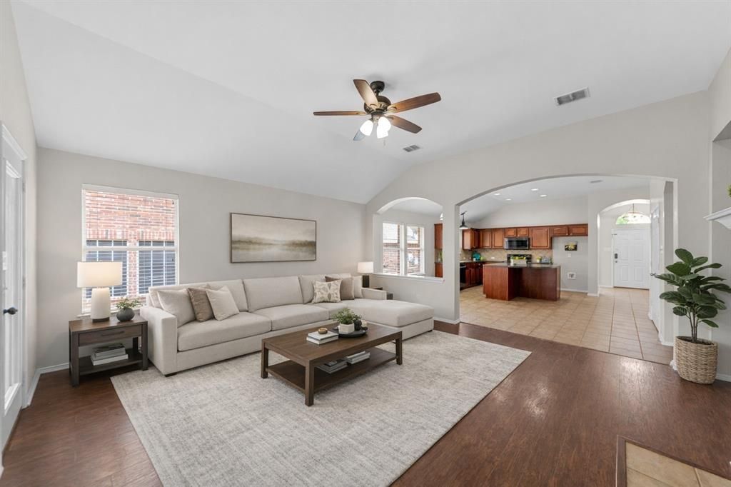 FABULOUS One Story 4 Bedroom Home with 2 living areas in the coveted neighborhood of Bozman Farms in Wylie, TX! Charming curb appeal with brick facade says 'Welcome Home!' Open concept floor plan is perfect for entertaining. The kitchen features large center island, updated stainless steel appliances, PLUMBED FOR GAS COOKING, tons of cabinet storage and counter space, big eat-in area and great double door pantry. Spacious living room with cozy GAS fireplace and shiplap accent wall. This home features an additional flex space that would make for a great 2nd living area, dining room, play room or office. Easy-care laminate wood floors & tile throughout most of the home! Private master suite with spa-like ensuite bathroom with dual sinks, built-in desk, separate shower and walk-in closet. Spacious secondary bedrooms. The covered back porch and the large yard are ready for pets or playtime! Check out all that Bozman Farms has to offer - 2 community pools, stocked fishing pond, parks, playgrounds, and hike and bike trails! You do NOT want to miss out on this AMAZING opportunity in Wylie ISD!