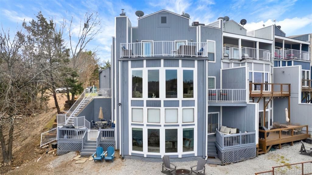 This unique three-story townhome offers a perfect blend of natural beauty and thoughtful design, with decks on all three levels overlooking a peaceful private lake. A walkway dock provides easy access for canoeing or paddle boating, while a firepit with a seating area above the shoreline creates an ideal spot for gathering, relaxing, or enjoying the quiet surroundings. From the third-floor deck, you can take in stunning views of Lake Texoma, along with a front-row seat to spectacular July 4th fireworks. Inside, the street-level primary suite serves as a true retreat, featuring a walk-in closet, walk-in shower, dual sinks, a cozy fireplace, a sitting area, a built-in desk, and floor-to-ceiling windows that bring the water views right into the space. Two additional guest bedrooms on the third floor share a convenient Jack and Jill bath, providing comfort for family or visitors. The first-floor kitchen boasts Corian countertops and stainless steel appliances, offering a welcoming space for meal prep and gatherings. The garage has been converted into a large storage closet and includes a built-in bunk and game room, complete with a bathroom, two sets of bunk beds, and arcade games, perfect for guests or weekend fun. Just a stone's throw from Tanglewood Golf Course, this home offers easy access to Highport Marina and is close to dining, shopping, and entertainment. Whether you're seeking a full-time residence, a weekend getaway, or a potential rental, this townhome presents an exceptional opportunity in a beautiful lakeside setting. The home is being sold fully furnished, including all appliances. Contact us today to learn more and schedule a showing.