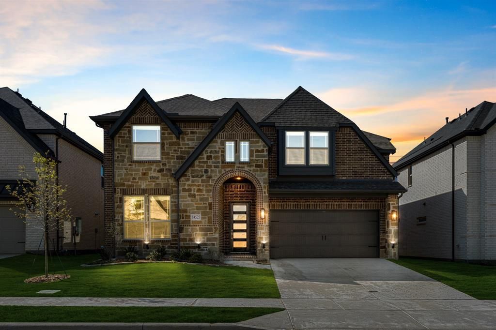 NEW! NEVER LIVED IN. Ready Now! Bloomfield Homes is building an all-brick Violet IV that carries its contemporary exterior style seamlessly indoors. The two-story layout includes 5 bedrooms, 4 bathrooms, a game room, media room, and a 2-car garage. The home opens into a light-filled, two-story family room with an open railing above, creating an immediate wow factor! The deluxe kitchen looks on from a smooth-wrapped island with a central sink, quartz countertops, pendant and under-cabinet lighting, a 5-burner gas cooktop beneath a wood vent hood, pull-out drawer for trash or recycling, pot and pan drawers, and a spacious walk-in pantry. Windows frame the covered patio and flood the main living area with natural light, with a window seat at the dining nook. Laminate wood flooring, curated tile selections, 8-foot interior doors, along with an upgraded 8-foot front door and rear patio door enhance the space. The first-floor primary suite offers a private retreat with another window seat, large walk-in closet, and a well-appointed bath. The first of 4 secondary bedrooms is downstairs, with a full bath just outside the door, while the other 3 bedrooms sit spaced out around the upstairs game room, including one with a private ensuite! None of the bedrooms in this home share walls with each other. Additional highlights include 2-inch faux wood blinds, gutters, exterior lighting, a tankless water heater, gas stub-out at the covered patio, and a mud room with laundry at the garage entry. Call or visit the model to learn more about this Violet IV by Bloomfield Homes!