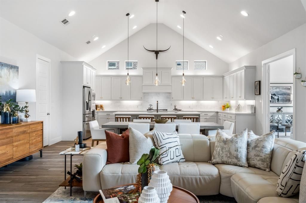 Step into a home designed for the way you live today. This exceptional single-story residence in Prosper ISD offers beautiful design, thoughtful upgrades, and a layout that makes everyday living feel effortless.At the heart of the home, a stunning 40-foot great room creates an open, inviting space anchored by an expansive gourmet kitchen with large island, perfect for gathering and entertaining. A custom slide-and-stack glass wall in the living area opens to the outdoor patio, creating a seamless indoor-outdoor connection ideal for both quiet mornings and hosting guests.Designed with comfort and convenience in mind, the home features whole-home backup power, enhanced lightening protection system, whole home surge protection, and a recirculating hot water system in the primary suite.Enjoy a true entertainment experience in the dedicated media room, pre-wired for surround sound and flexible display options. Additional features include integrated speakers in the main living areas and patio, plus strong connectivity throughout the home to support today’s work-from-home and streaming needs.The single-story layout offers 4 spacious bedrooms, a private office, and 3 full baths, all thoughtfully arranged for function and flow.Additional highlights include epoxy garage flooring, ceiling-mounted storage in garage, and a well-organized central hub for home technology and wiring.With over 3,300 square feet of well-maintained living space, this move-in ready home combines style, function, and everyday comfort in one exceptional property.