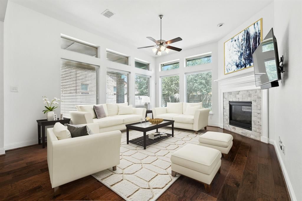 Welcome Home to 1516 8th Street in the Award Winning Master Planned community of Harvest. This David Weekley Home has an open and flexible floorplan. Downstairs you are greeted with manufactured hardwood floors throughout the main living areas and a sizeable living room with a corner fireplace that opens to the Kitchen boasting granite countertops, stainless steel appliances and white cabinetry. The separate dining area is adjacent to the Kitchen and has enough space to hold a table large enough for 6-8 people. The primary bedroom, located off the back of the home, has an ensuite bath with soaking tub, frameless glass shower enclosure and a custom closet. This home also offers a secondary bedroom downstairs located at the front of the home. The flex space, off the entry way, with glass French doors, could be used as an office, living or play space. Upstairs you will find two more bedrooms, a Game Room and a designated Media Room for the movie and sports enthusiast. Outside you have a lovely covered back porch with a gas stub for easy grilling and great yard space for pets and kids.Let's not forget all of the amazing amenities that Harvest has to offer. From indoor and outdoor meeting places, social clubs, pools, splash pads and a fitness center, there is something for everyone! The Harvest lifestyle program and Director will keep the whole family busy with a variety of planned activities.