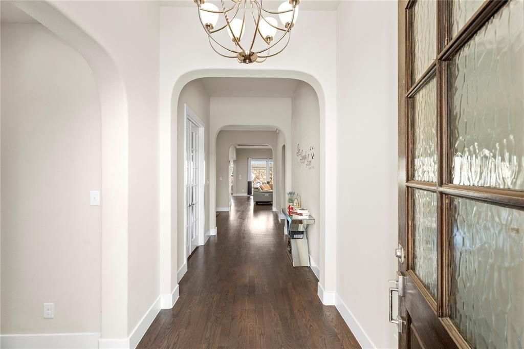 Beautiful one story floor plan home featuring open concept from the kitchen to family room with sliding glass doors leading to covered patio for added lighting. Off the Kitchen there is a pocket office space for the extra work space that is needed leading to a huge walk in pantry. Not only is the home warm and cozy on the inside, the exterior will give you morning sun with open space for privacy as you sit on your extended back patio in the backyard. This Luxury Home includes 8' doors throughout home, a gourmet kitchen with lush countertops, 36in cooktop double oven and built in microwave, nail down hand scraped hardwood floors and much more to see!