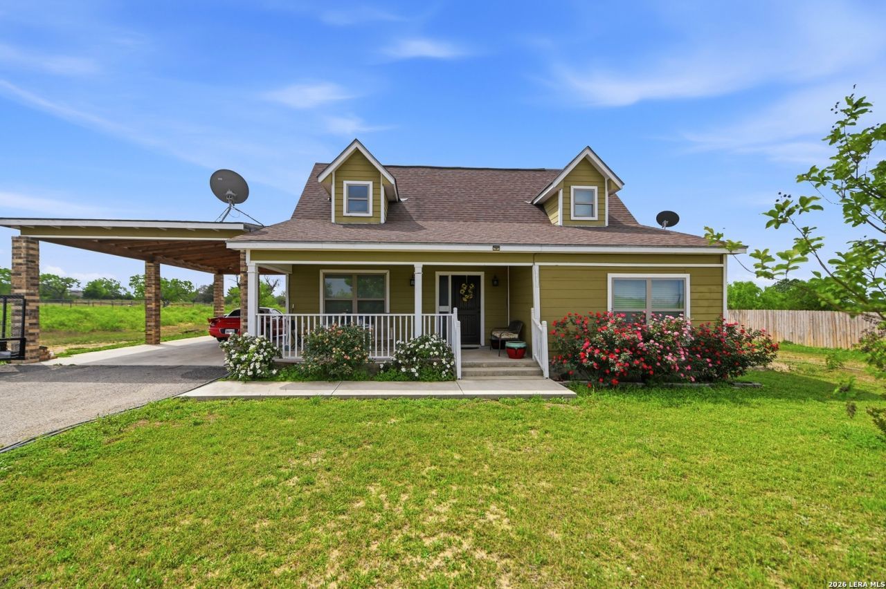 COUNTRY LIVING CLOSE TO THE CITY. VERY UNIQUE PROPERY. HOME, 6 CAR GARAGE/WORKSHOP, 2 CAR CARPORT, INGROUND POOL THAT SELLER ENCLOSED WITH A BUILDING SO NOW INDOOR POOL (CURRENTLY HAS REMOVABLE FLOOR AND IS USED AS STORAGE BUT POOL IS GOOD) WITH FULL BATH. OPEN FLOOR PLAN WITH HIGH CEILINGS WITH LOTS OF CUSTOM FEATURES. THE KITCHEN FEATURES GRANITE COUNTERTOPS AND A UNIQUE GRANITE SINK, STAINLESS STEEL APPLIANCES AND LOTS OF CABINETS. CERAMIC TILE THAT LOOKS LIKE WOOD THROUGHOUT ALL THE LIVING AREAS. CARPET WITH EXTRA PADDING IN BEDROOMS, THE LIVING EATING AND KITCHEN AREA ARE ALL OPEN TO ALLOW ENTERTAINING OF LARGER GROUPS OF PEOPLE. MASTER BEDROOM IS SPACIOUS AND FEATURES A BATH WITH CABINET STYLE DOUBLE VANITY, LARGE SHOWER WITH CEILING MOUNTED RAIN SHOWER, SPACIOUS CLOSET AND HUGE DECK OFF THE BEDROOM. THE HOME FEATURES MINI-SPLITS VS CENTRAL AC, 2 X 6 OUTSIDE WALLS, 2 X 10 ATTIC JOIST ALL WITH EXTRA INSULATION MAKING THE HOME VERY ENERGY EFFECIENT. THE BACK BUILDING IS BIG ENOUGH TO PARK 5 TO 6 CARS, MAKE A GREAT WORKSHOP, RUN YOUR BUSINESS FROM THERE AND MORE. THE POOL HOUSE IS CURRENTLY STORAGE BUT THE SELLER CAN REMOVE THE PLYWOOD COVERING THE POOL AND WITH JUST A POOL SERVICE YOU CAN ENJOY THE PRIVACY OF YOUR OWN POOL. IF THE SELLER WAS STAYING, HE WAS CONSIDERING REMOVING THE BUILDING SIDES AND REPLACING WITH SCREENS SO THERE ARE MANY OPTIONS FOR YOU AS A BUYER. ONLY A SHORT DRIVE TO SAN ANTONIO BUT SMALL-TOWN LIVING AT ITS FINEST