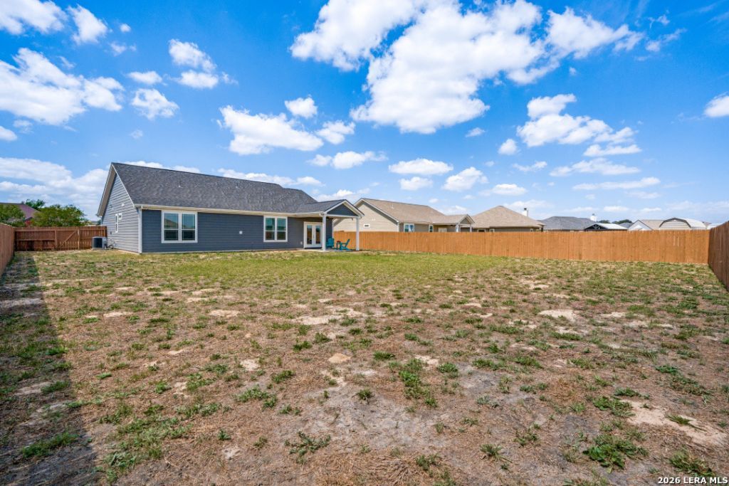 Built in 2023, this La Vernia home blends modern design with the relaxed feel of small-town living. The open floor plan welcomes you with high ceilings and soft lighting, while the kitchens granite countertops and central layout make it ideal for both daily living and entertaining. Enjoy your morning coffee or evening unwind on the covered back patio overlooking a private fenced yard with no neighbors directly behind you. Inside, spacious closets and thoughtful finishes throughout provide both comfort and functionality. Outside, the stone and siding exterior along with a composite roof provide durability and curb appeal. Located just 10 miles from H-E-B and under an hour from San Antonio, this property also offers no HOA, no city taxes, and co-op utilities, giving you more freedom and value in one of La Vernias most desirable small-town settings.