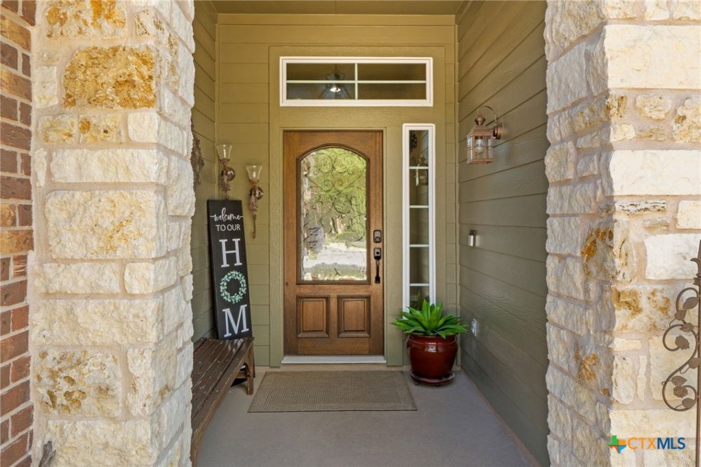 Enjoy the open floor plan with an abundance of natural light. Your backyard patio feels private since no neighbors are directly facing your home. This is a gently lived in 4-bedroom, 2-bath home with many storage areas throughout. Youll love the custom finished oversized 3-car garage that has an additional 3-foot upgrade of space to hold longer vehicles. Both doors are insulated for sound and comfort. The open concept kitchen area has tasteful granite counters, upgraded 42 cabinetry with crown molding, brushed nickel hardware, stylish backsplash, and matching upgraded built-in appliances. The pony wall is finished with a similar stone to the fireplace that runs from floor to ceiling. The primary suite offers an abundance of light from an oversized window-box seating area. The primary ensuite has a walk-in closet that is strategically located just steps from the nice sized shower. Multiple upgrades in special lighting flip from a night light to regular temperature. All three secondary bedrooms are nicely sized with roomy closets. The Park at Blackhawk currently offers two amenity centers with swimming pools, kiddie pool area, fitness centers, tennis and pickle ball courts, playgrounds, etc. One amenity center is an easy walk down the street, across the street from the elementary school. This home is conveniently located for an easy commute throughout the greater Austin area. Its very convenient to major roadways where youll find dining, shopping, employers, universities, hospitals, entertainment and more!
