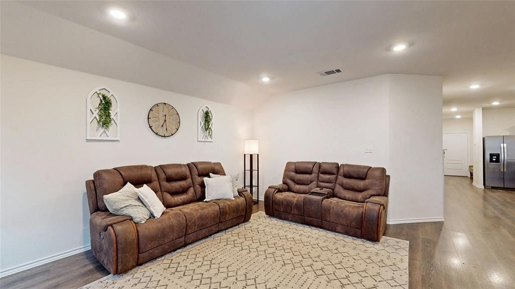Gorgeous single-story in Camden Parc - terrific location just minutes from 75! Immaculate landscaping and a beautiful brick and stone elevation highlight the drive-up appeal of this home! Inside you will find 5 bedrooms, 2 full baths, and 2-car garage. An open-concept kitchen and living layout makes entertaining a breeze! Neutral paint tones and rich luxury vinyl flooring span the entire home - no carpet! Island kitchen is located at the heart of the home, offering abundant cabinetry and counter space, stainless appliances including an electric cooktop, quartz countertops, walk-in corner pantry, and an adjacent dining area plus a breakfast bar for additional seating. Primary bedroom is secluded at the rear of the home and offers a private ensuite bath with a large walk-in closet and linen storage. 4 secondary bedrooms are split for added privacy. Large backyard is complete with a covered patio area!