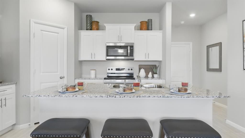 Beautiful new D.R. Horton home in the Longhorn Estates community located in Fort Worth and Crowley ISD! The single-story Elgin floorplan elevation Z, with an estimated Summer completion, offers 4 bedrooms, 2 bathrooms, and a 2-car garage with a modern open-concept design that blends spacious living with everyday convenience. The family room, dining area, and contemporary kitchen flow together seamlessly to create an inviting central space ideal for both entertaining and daily living. The chef-inspired kitchen showcases quartz countertops, 36” painted cabinets, stainless steel appliances, a gas range, stainless steel sink, center island, and a walk-in pantry for practical storage. The private primary suite is thoughtfully designed with an en-suite bath featuring dual quartz vanities, a 5-foot oversized shower, and a walk-in closet conveniently located off the bathroom. Three secondary bedrooms and a full bathroom with a quartz vanity top offer comfortable accommodations for family or guests, with a layout that provides added privacy. Luxury vinyl plank flooring extends throughout the main living areas and wet zones, combining durability with easy maintenance. This home is built with energy-efficient construction and includes America’s Smart Home Technology for modern comfort and everyday convenience. Exterior features include a professional landscape package, full sprinkler system with rain sensor, privacy fencing, and more. Longhorn Estates is more than a neighborhood-it's a community designed with your future in mind.