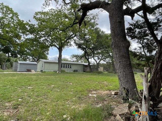 Residential or Commercial 5 UNRESTRICTED acres with Grand Daddy OAKS ,170+ feet of FM 306 frontage, a private well, and 2 septic tanks. There is plenty of nature, peace and privacy in the back of the property. Perfect for a home business situation. Well maintained doublewide 3 bedroom-2 bath with a bonus room ( updated roof and central AC/Heat). This level oak studded property includes out buildings and is partially fenced. Minutes from shopping and schools, located between Austin and San Antonio accessible to tons of Hill Country recreation.