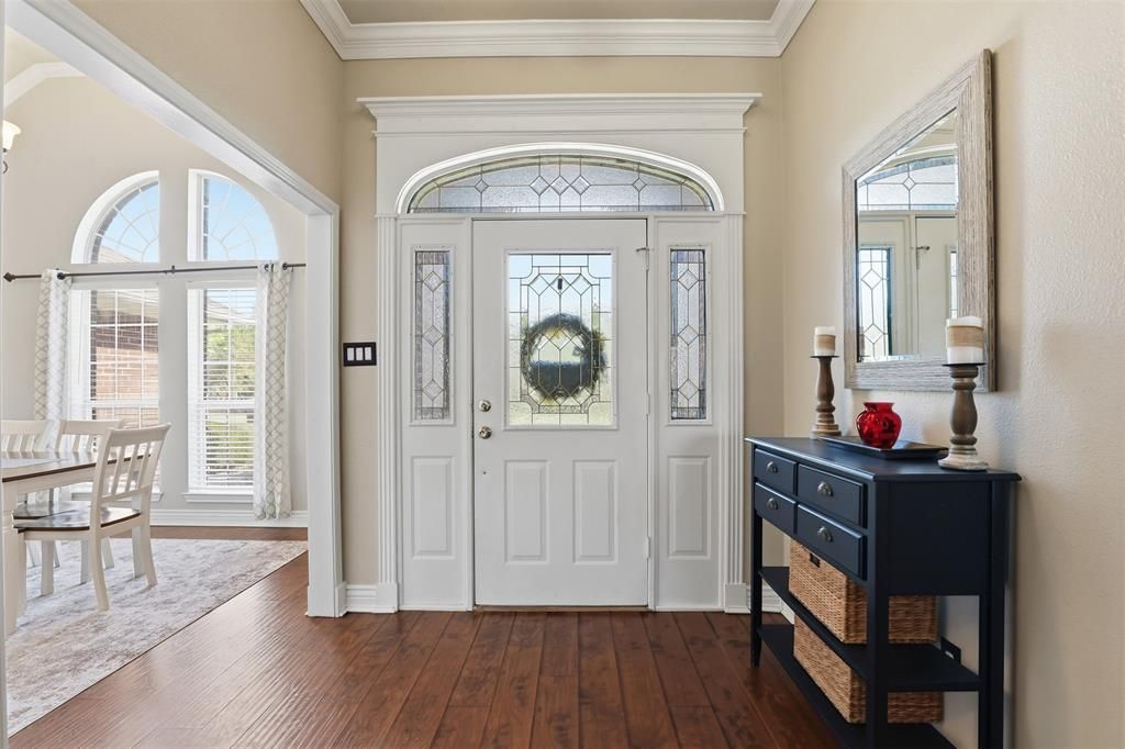 Modern Updates, Spacious Living & Big Texas Sunsets in Aledo ISD! Gorgeously updated and move-in ready, this beautiful 4-bed, 2.5-bath home sits on over an acre in the highly acclaimed Aledo ISD. The spacious, flowing layout features an open family room with a wood-burning fireplace, a flexible dining area near the front entry, that could be used as an office space, and a bright breakfast nook overlooking the backyard and those unforgettable Texas sunsets. Luxury vinyl plank flooring extends throughout the living areas and bedrooms, with tile in the kitchen and wet spaces. Large windows fill the home with abundant natural light. The stunning kitchen offers granite countertops, generous cabinetry, a large walk-in pantry, decorative lighting, breakfast bar, and built-in microwave. The private primary suite includes a walk-in closet, dual vanities, walk-in shower, and relaxing garden tub. Secondary bedrooms are all generously sized and share an updated bath with a separate dressing-vanity area. Step outside to enjoy peaceful evenings and breathtaking sunsets from your back patio. The property is fully fenced and includes a storage shed and a charming tree house.