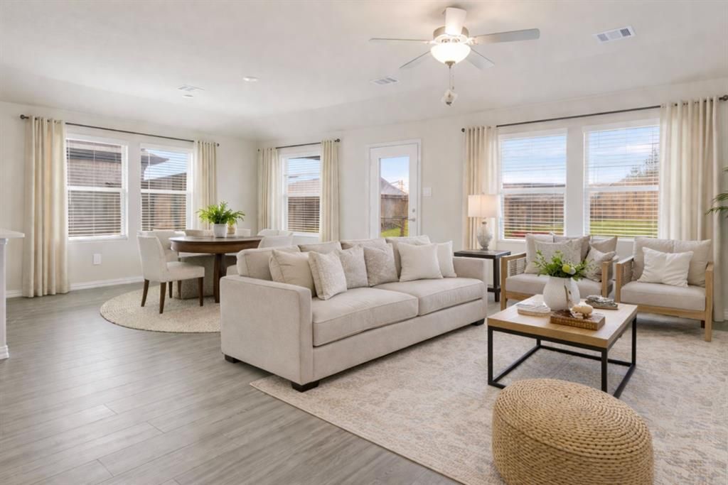 Welcome to this beautifully designed, energy-efficient home in Northwest ISD, offering the perfect blend of comfort, flexibility, and modern finishes. Situated on a generous 0.231-acre lot, this property provides ample space for a future pool, outdoor living area, or private backyard retreat, with added privacy for everyday enjoyment.Inside, you’ll find a smart split-bedroom floorplan featuring four bedrooms, including a secondary primary suite—ideal for multi-generational living, guests, or added flexibility. One of the bedrooms can easily function as a home office, perfect for today’s work-from-home lifestyle.The open-concept living area flows seamlessly to the covered back patio, creating an ideal setup for indoor-outdoor entertaining. The home showcases the sought-after Balanced design package, including dusk cabinets, white quartz countertops, beige EVP flooring, and dark gray tweed carpet for a warm, modern aesthetic.Additional highlights include a refrigerator, washer, and dryer included, making this home truly move-in ready.Enjoy community amenities such as multiple pools and playgrounds, perfect for relaxing or staying active. Conveniently located near SH 287, with easy access to Alliance Town Center, Presidio Shopping Plaza, and major business hubs, this home offers both tranquility and accessibility.Experience next-level energy efficiency, designed to help you save on utility costs while enhancing everyday comfort.