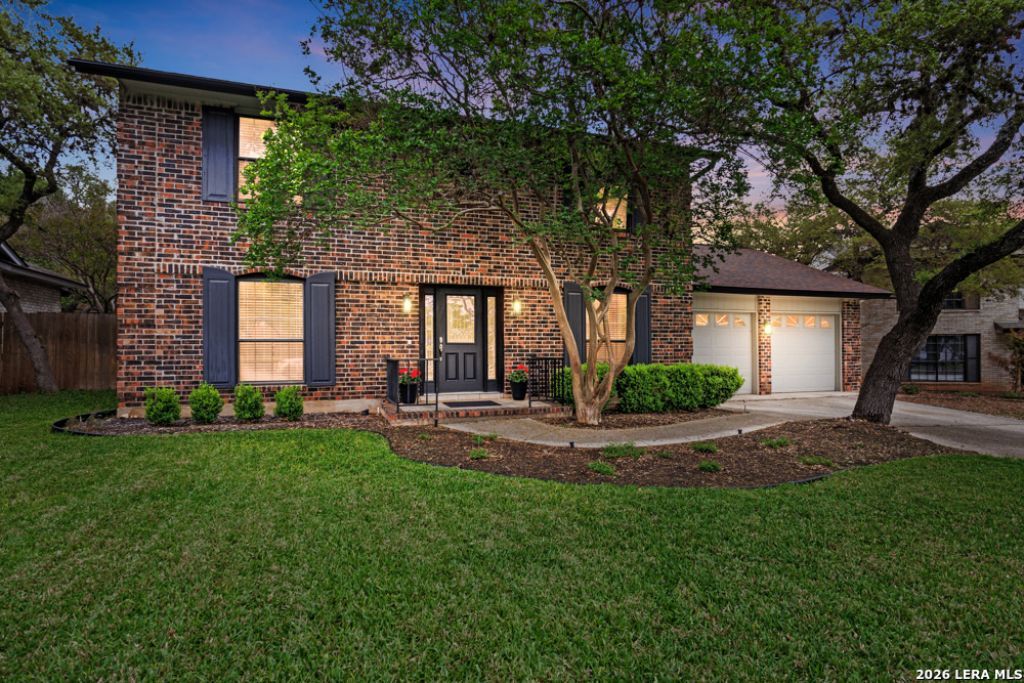Situated in a fantastic North Central location of San Antonio, this captivating 4 bedroom, 2 1/2 bath residence offers a blend of comfort and style. The property is framed by beautiful live oak trees and landscaped grounds, creating an inviting atmosphere that enhances outdoor living. The kitchen and bathrooms have elegant granite countertops, while the entry, kitchen, breakfast area, and baths feature durable tiled floors. Wood laminate flooring flows throughout the formal dining room and living rooms. The fourth bedroom, currently used as a study, offers flexibility for various needs, such as a nursery or home office. The oversized garage includes a dedicated workspace, perfect for DIY projects or extra storage. A screened-in patio extends the living space outdoors, providing a serene spot to enjoy nature. This property showcases quality craftsmanship and functional usability, ideal for various lifestyles. Its prime San Antonio location ensures easy access to amenities, parks, and schools, enhancing the living experience.