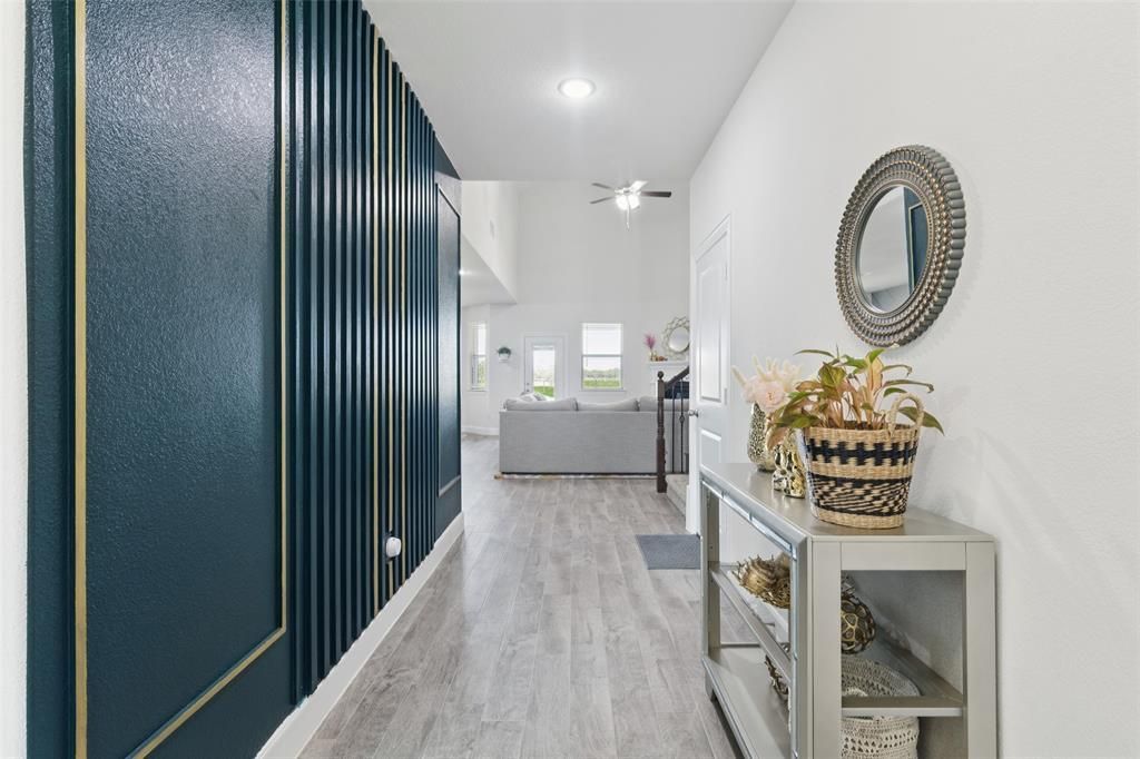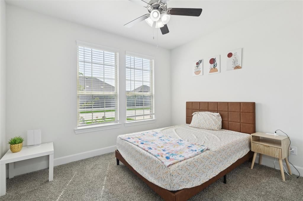 Beautiful and spacious, this 2-story home in Aubrey’s highly sought-after Silverado neighborhood impresses on every level with its light-filled, open-concept design and thoughtful layout. Great curb appeal begins with the striking stone and brick façade, welcoming you inside to a bright interior with a neutral color palette that complements any décor. Stylish touches such as accent walls in the foyer and dining area add warmth and character. Designed for comfort and flexibility, the floorplan is ideal for entertaining or multi-generational living with the primary suite conveniently located downstairs, along with a secondary bedroom and full bath. At the heart of the home is the inviting living room featuring soaring ceilings and a cozy corner fireplace. The chef’s kitchen boasts granite countertops, a large island with breakfast bar, walk-in pantry, and a gas range. Upstairs, a generous bonus space provides endless possibilities as a game room, media space, or second living area. Step outside to a covered patio overlooking the expansive fenced backyard—perfect for a pool, play, or entertaining. Enjoy beautiful and relaxing lake views, offering a serene and picturesque backdrop right from your own home. Silverado residents also benefit from a vibrant community atmosphere.