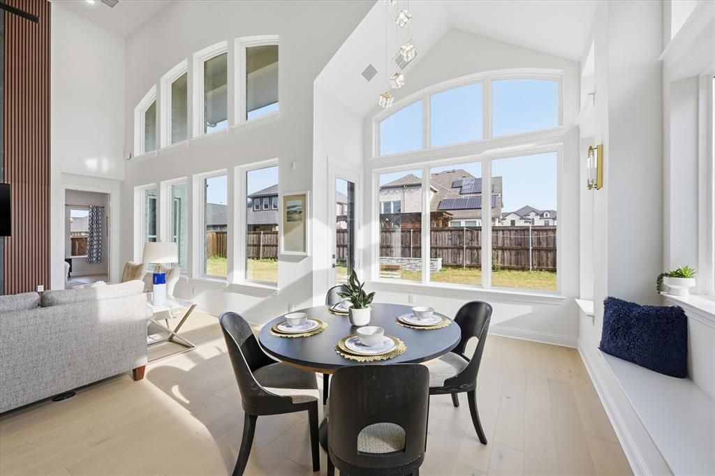 Rare lakefront new construction in Prosper ISD, located in the highly sought-after Lakes of Legacy community opportunities like this don’t come up often. This 2025 Grand Homes residence offers a bright, open layout with expansive windows capturing peaceful water views, all just minutes from PGA Frisco, the upcoming Universal theme park, Legacy West, and The Star placing top dining, shopping, and entertainment within easy reach. The home is thoughtfully designed with an open-concept living, kitchen, and dining area that flows effortlessly for both everyday living and entertaining. The main level includes two bedrooms and full baths, ideal for guests or multi-generational living. Upstairs features a game room and media room, along with spacious secondary bedrooms, while the primary suite offers a private retreat with a spa-like bath.