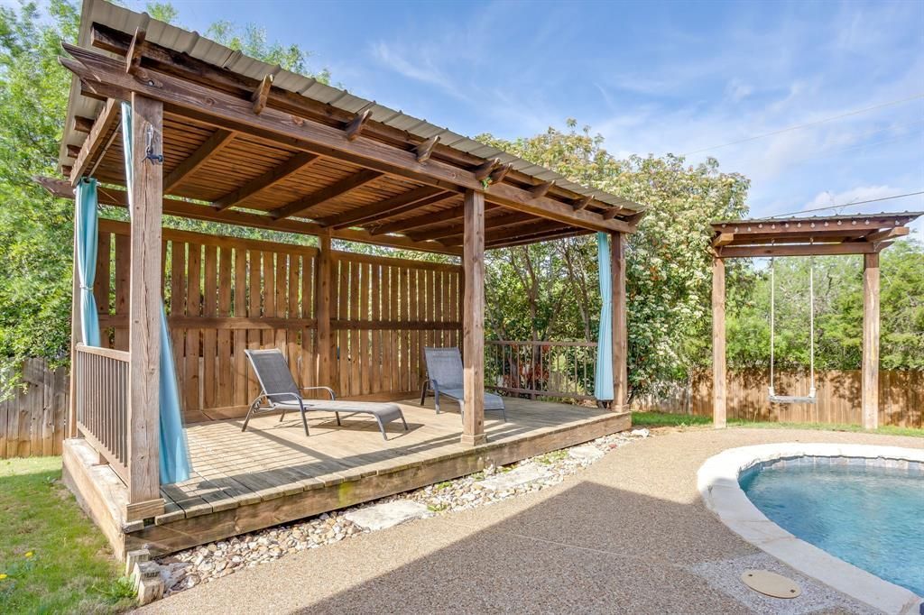 SUMMERTIME OASIS THAT BOASTS A BACKYARD AND POOL AREA LIKE NO OTHER!! Features include: pool with water feature, large stone wood burning fireplace with uncovered patio, covered patio with outdoor kitchen, covered pergola and storage building. This home is gorgeous inside and out, 4 bed or 3 bed with study, mason wood burning fireplace, stained concrete and wood floors, large master suite with 2 walk-in closets and separate vanities, very unique shower and tub, gourmet kitchen with stainless appliances, breakfast bar, oversized landry room, spacious bedrooms and a screen for the garage door. This property is a must see. Call and schedule your appointment today!!