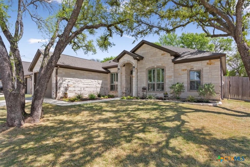 Mature trees front and back and generous, cooling shade make this immaculate 4-bedroom, 2.5-bath home unforgettable. Beautifully maintained and spacious, the home includes a dedicated study and numerous thoughtful upgrades ? tile flooring throughout, plantation shutters on every window, and a fully remodeled primary bath with a large walk-in shower and built-in cabinetry for extra storage. The bright, open-concept living area is flooded with natural light and centers on a cozy stone fireplace, flowing seamlessly into the gourmet kitchen. The kitchen features custom soft-close cabinets and drawers, granite countertops, abundant workspace, and ample room for entertaining. Outside, enjoy a huge covered back patio overlooking the shaded backyard and a brand-new 16x16 storage shed ? perfect for tools, hobbies, or lawn equipment. This move-in-ready home blends comfort, style, and convenience in a desirable Belton location close to excellent schools, shopping, dining, Lake Belton, and everyday amenities.