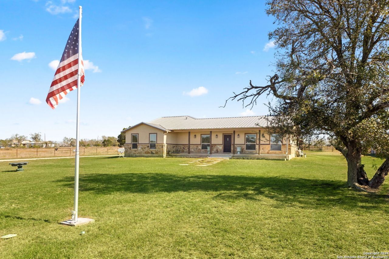 Enjoy the best of country living on ten peaceful acres just minutes from Seguin. The acreage is thoughtfully laid out with a blend of pipe fencing and high-tensile fencing, creating a secure, functional setup well-suited for horses, livestock, or those wanting a well-organized property from day one. This property brings together a quality custom home, pool, and a versatile barn/workshop-offering both comfort and purpose. The main residence features 2,250 square feet of open living space with high ceilings, stained concrete floors, and a spacious kitchen with granite counters, gas cooking, and generous cabinetry. The primary suite includes a large walk-in closet and oversized bath, and the home is equipped with a gas on-demand tankless water heater for added efficiency. Outdoor amenities include an in-ground pool, covered patio, and a fully equipped outdoor kitchen, creating a relaxing retreat ideal for quiet evenings or entertaining. A key asset to the property is the 60 x 60 combination barn and workshop, designed to support a wide range of uses. It includes a tack/feed/saddle room, climate-controlled storage, and separate guest quarters with a full bath and laundry connections-making it ideal for visitors, office space, or hobby use. With an agricultural exemption, gated entry, and a layout that balances open space with purposeful improvements, this property offers privacy, flexibility, and convenient access to town.