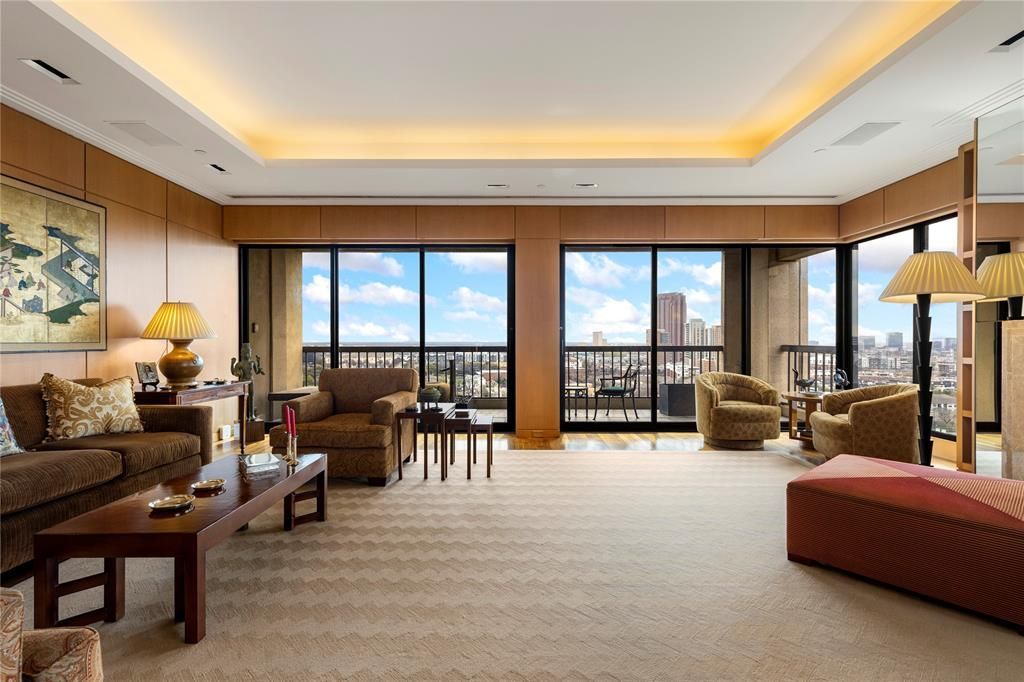 Commanding magnificent views of the downtown skyline, this exceptional penthouse is gracefully positioned in the heart of Turtle Creek. Encompassing over 4,000 square feet, the residence offers three well-proportioned terraces—providing a rare opportunity for refined indoor-outdoor living, ideal for relaxed gatherings and quiet enjoyment of the surrounding vistas.Thoughtfully reimagined by renowned Dallas architect Bill Booziotis of Booziotis & Company, the home reflects a meticulous level of craftsmanship and design. The kitchen is appointed with granite countertops and a Sub-Zero refrigerator, while rich African hardwood paneling, hardwood floors, and marble accents lend a timeless sense of elegance and warmth throughout.A custom Lutron lighting system, designed by Craig Roberts, and a fully integrated Savant audio-visual system further enhance the residence, offering modern convenience within a classically refined setting.Offering three bedrooms and three-and-a-half baths, this home is one of only six penthouses in the building—an exclusive offering with unobstructed views of Turtle Creek and the downtown Dallas skyline from a truly distinguished vantage point.Residents of The Warrington enjoy an elevated standard of living with 24-hour valet and concierge service, a resort-style heated pool with outdoor grilling pavilion, a well-appointed fitness center, and a gracious entertaining room with catering kitchen. Additional amenities include pickleball and tennis courts, along with immediate access to the Katy Trail for walking, running, and cycling.A rare offering defined by timeless design, exceptional views, and a premier Turtle Creek address.