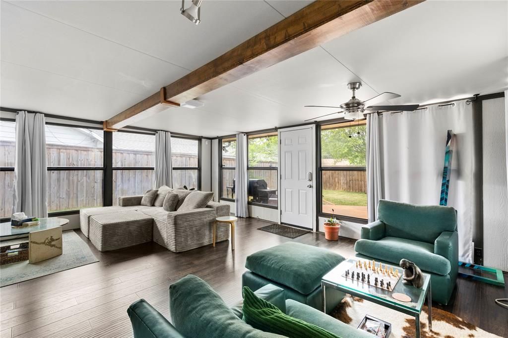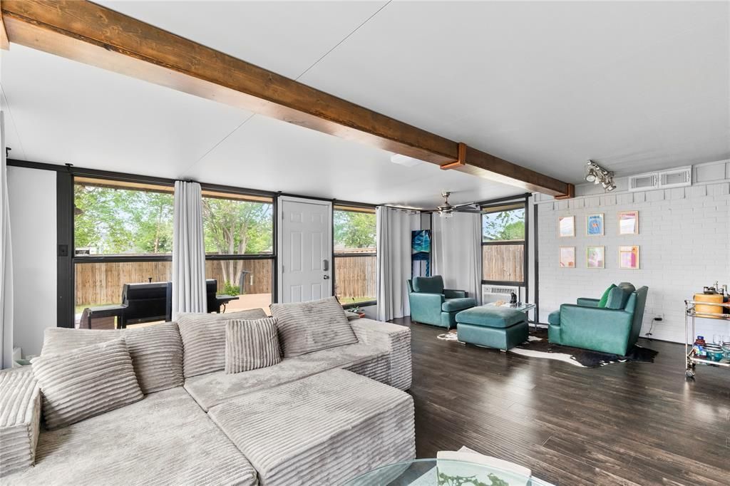 If space & flexibility are at the top of your list, this exceptional single-story home in the heart of Irving is the one you’ve been waiting for. Perfectly positioned near multiple highways, and just minutes from DFW Airport, you’ll enjoy effortless access to both Dallas & Fort Worth, all while coming home to a quiet cul-de-sac setting. Step inside & you’ll immediately notice how thoughtfully this home is designed to maximize every square foot. The layout offers an impressive sense of openness & versatility, creating spaces that can easily adapt to your lifestyle. The living room is the true centerpiece, featuring striking beamed ceilings + a wall of windows that fill the home with natural light. Its generous proportions allow for multiple uses, whether you envision a cozy media space, a secondary sitting area, a home office nook, or a seamless blend of living & dining. The kitchen, breakfast nook & dining areas flow effortlessly together, forming a central hub that feels both open & connected, perfect for everyday living. The kitchen shines with granite countertops, shaker-style cabinetry, SS appliances & abundant storage and prep space, making it as functional as it is inviting. The primary suite offers a peaceful retreat with room for a sitting area, beamed ceilings, multiple closets & a beautifully updated en-suite bath featuring granite finishes and a separate shower. Two additional bedrooms are thoughtfully positioned alongside a fully updated bath. A full-size utility room with built-in cabinetry adds even more practical storage to this well-designed home. Step outside to a backyard that extends your living space even further, private, spacious, and ready for your vision. Whether it’s outdoor entertaining, a play area, or future enhancements like a garden or pool, the possibilities are wide open. The expanded patio creates the perfect setting for relaxing evenings or weekend gatherings. This home has a flexible layout, smart design, and unbeatable location!