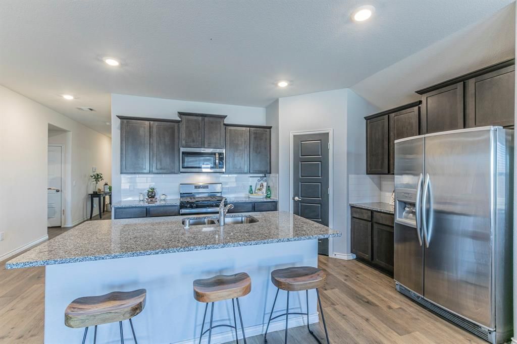 PRICE IMPROVEMENT!! Welcome to this lovely 4-bedrooms, 2-bathrooms, single story brick home located in a N. McKinney newer development (homes built between 2023-2025). It's a popular country meets suburban setting and sits in the highly sought after Melissa Independent School District. Offering over 1800 sq ft of living space this house opens to an airy layout where wood-like laminate plank floors sweep through the entrance into the kitchen, dining, & family living areas, perfect for family gatherings and everyday living. The natural sunlight creates a warm & inviting atmosphere in your modern kitchen, that includes granite counter tops, stainless steel appliances, eat-at island and a large walk-in panty for all your storage. 3 bedrooms are located in the front of the house, & one could easily function as a study, playroom, or quiet room for those serene moments we all savor. The primary bedroom is a great size & positioned in the back of the house for privacy. Large windows to brighten the room & the en-suite that includes dual sinks, stand alone shower, linen shelving, & an ample walk-in closet. The energy efficient Low-E windows and programable thermostat helps you keep your rooms temps where you want them. The spacious 2-car garage provides plenty of room & has a classy epoxy floor & it's where you find your tankless hot water heater for those endless showers. Step outside to a large fenced backyard-perfect for relaxing and enjoying your morning coffee on the covered patio & spend evenings grilling or just enjoying the backyard. This home combines comfort, style and an exceptional location. It's minutes from US-75, and accessible to shopping, dining and parks. Come See!