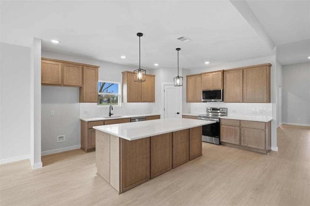 NO HOA...NO RESTRICTIONS! CLOSE TO TOWN! This brand new custom built home offers a bright and open floorplan designed for comfortable everyday living. One of the most convenient features is the walk in primary closet, which also connects to the laundry room for effortless functionality. Do you want an oversized kitchen with an oversized and enormous island? Done. Upgrades include quartz countertops, ss appliances, pantry, upscale fixtures. This home flows meticulously with split bedrooms, large primary bedroom, formal dining or office flex space. Primary bedroom is spa like and the bathroom has double sinks, separate bath and shower, oversized and spacious closet. This builder went above and beyond when it comes to energy efficiency. The attic has spray foam insulation for the ultimate use of protection against the weather elements, which will result in a low monthly utility bill. Step outside to enjoy a large fenced in backyard with plenty of space to relax, play or entertain.