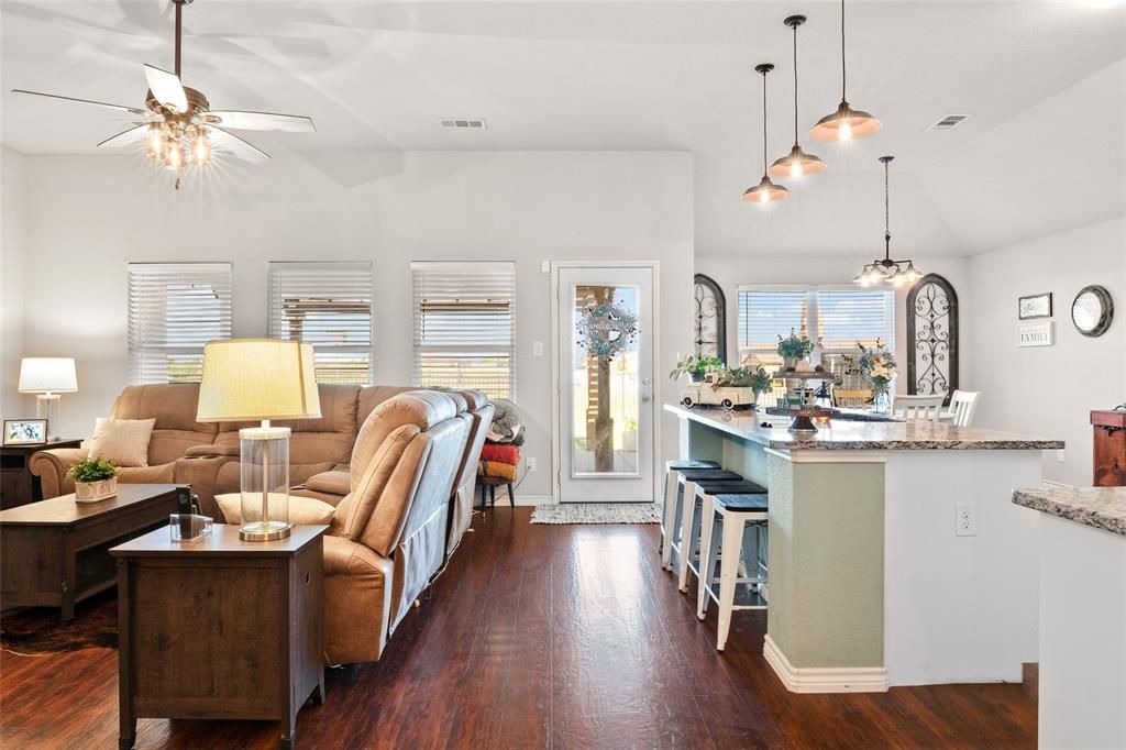 Welcome to 4126 Bridle Path Lane, a beautifully maintained and thoughtfully designed home nestled in a quiet addition in Sanger’s desirable Sanger Circle community. This crisp open home offers a warm and inviting layout with 3 spacious bedrooms, 2 full bathrooms, and a dedicated front study (optional 4th bedroom) framed by elegant French doors. Upon entry, you’ll notice rich hardwood floors and graceful arched hallways, complemented by rounded corner drywall finishes and soaring vaulted ceilings that create an airy, open feel throughout the main living spaces.The gourmet kitchen is a standout feature, complete with gleaming granite countertops, a sleek tile backsplash, stainless steel appliances, a walk in pantry, and a convenient eat at bar perfect for casual dining or entertaining. Both bathrooms feature matching granite countertops and tasteful tile finishes, while the master suite boasts plush carpet, a large soaking tub set beneath a privacy window for soft natural light, a separate tiled shower, and dual sinks.Each secondary bedroom offers cozy, plush carpeting and generous closet space. Step outside to a beautifully manicured backyard where a spacious covered patio is enhanced by an attractive wooden pergola, offering shade and comfort while overlooking the lush lawn and peaceful greenbelt beyond. This home effortlessly blends modern amenities with comfort and charm, ideal for both relaxing and hosting in style. Fencing is wood and wrought iron offering both privacy and visual openness. Backyard backs to greenbelt ideal for sunset views and future clubhouse and pool access.