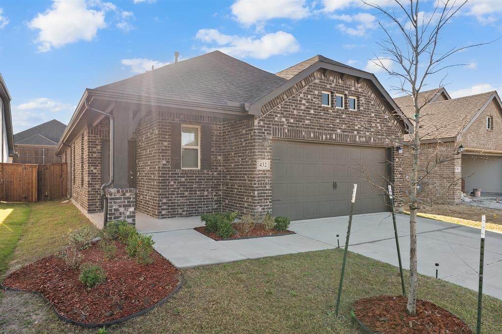Welcome to 432 Silent Pond Park, a stunning 2023-built retreat in the highly sought-after Elevon master-planned community. This meticulously maintained 1,651 sq. ft. home offers the perfect blend of modern sophistication and everyday comfort.Step inside to an open-concept layout featuring a chef’s kitchen that truly shines. Boasting upgraded eucalyptus-toned cabinetry, chic quartz countertops, and a custom designer hexagon backsplash, this kitchen is as functional as it is beautiful. The upgrades extend into the bathrooms with matching custom cabinetry, providing a cohesive and luxurious feel throughout.Retreat to the private primary suite, thoughtfully separated from the secondary bedrooms for ultimate peace. The smart home integration and tankless water heater add modern efficiency to your lifestyle. Outside, enjoy Texas sunsets from your covered patio overlooking a private, fenced yard and sprinklers. Residents of Elevon enjoy world-class amenities, including a resort-style pool, fitness center, walking trails, and playgrounds. Why wait for a build when your dream home is ready now. MOTIVATED SELLER!! BRING ALL OFFERS!!