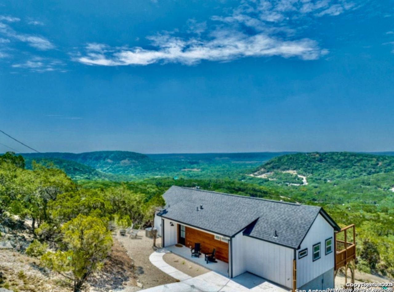 Welcome to Vista De Estrella! Wake up on top of the world in this fabulous chic boutique Hill Country escape, where endless 360-degree views stretch across rolling hills, dramatic bluffs, and big Texas skies. Perched high atop one of the most scenic areas in the Texas Hill Country, this 2-bedroom, 2-bath luxury retreat is a breathtaking private sanctuary for its owners and guests alike. Inside, the home is drenched in cool coastal Mediterranean colors, layered with jewel tones and boho-chic design that instantly make you exhale. Every space is thoughtfully curated-with high-end furnishings inside and out, comfy cozy designer bedding and luxury linens, to a fully stocked gourmet kitchen ready for long weekends and slow mornings. Sold fully furnished and turnkey, this highly successful vacation rental home has been lovingly styled down to the last detail. Grab a cup of coffee, step outside, and let the magic continue with breathtaking sunrises, or wind down with a glass of wine in the evenings as the sky lights up with unforgettable sunsets. Settle into Adirondack chairs, and watch the sun melt into the hills. A nice privacy fence creates an intimate outdoor setting, while a boat parking pad at the street makes lake days effortless. Just minutes from Canyon Lake and the Guadalupe River, adventure is always close, yet home feels worlds away. This is not just a home-its one of the most highly successful 5-star vacation rentals in Canyon Lake with a proven track record and an experience guests rave about. Historical rental data available upon request. No HOA, high demand location close to Whitewater Amphitheater, the Guadalupe River, tubing outfitters, Canyon Lake boat ramps, the north side marina, San Marcos Outlet Malls, Schlitterbahn, San Antonio, and Austin, and an atmosphere that keeps visitors coming back again and again. Whether youre looking for a personal getaway, an income-producing retreat, or both, this Hill Country gem is truly something special. Tour this home today or it will be gone tomorrow!