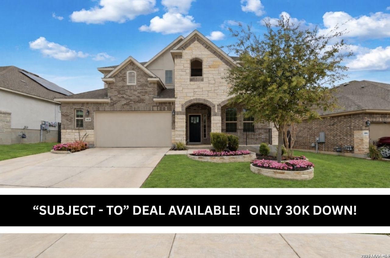 SUBJECT-TO AVAILABLE WITH ONLY 30K DOWN! at 5.7 RATE! Inquiry to know more details! & Come see this 4-bedroom, 3.5-bath home that perfectly blends elegance, functionality, and modern comfort. Elevated ceilings and an open-concept layout create a bright, spacious feel ideal for everyday living and entertaining. The chefs kitchen features gas cooking, ample counter space, a large island, and breakfast bar, while the living room is anchored by a cozy gas fireplace. The first-floor primary suite offers a bay window, coffered ceiling, and spa-like en-suite with a walk-in shower and dual vanities. Upstairs, enjoy a dedicated media room and game room for endless entertainment. Outside, relax on the covered rear patio. The garage includes a mini-split system-perfect for a home gym-plus overhead storage. Located in a vibrant community just minutes from shopping, dining, theaters, and entertainment, this home delivers both luxury and convenience.