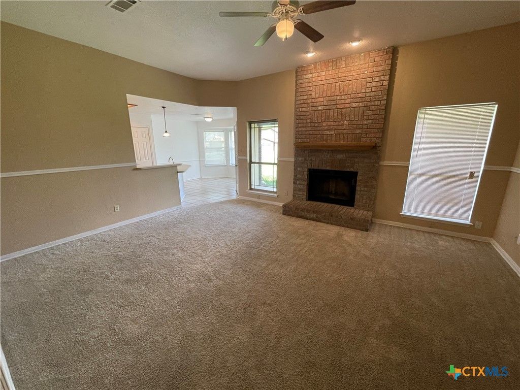 Buyer was not able to qualify so you have another chance!! This 4 bedroom, 2 bathroom home for rent in Killeen, TX offers a comfortable and stylish layout with a blend of carpet and ceramic tile flooring throughout. The living area is highlighted by a beautiful brick fireplace, recessed lighting, and ceiling fans that enhance both comfort and charm. The kitchen features stainless steel appliances, including a glass-top stove, microwave range, and a side-by-side refrigerator with an ice and water dispenser and bottom-drawer freezer, along with a dedicated dining area perfect for everyday meals or entertaining. The primary bedroom includes an ensuite bath with a double vanity and a relaxing soaking tub. Additional conveniences include washer and dryer connections and an attached two-car garage.