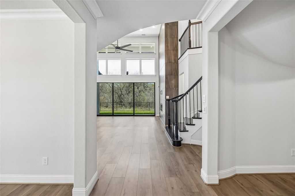 Tucked within the sought-after Lake Forest community, this exceptional estate is a striking blend of sophisticated design, everyday functionality & serene natural beauty. Set on a premium lot backing to protected HOA greenspace & scenic nature acreage, the home offers a rare sense of privacy & picturesque views that create a true retreat-like setting. From the moment you step inside, the refined interiors make an immediate impression, with a grand foyer flanked by two beautifully versatile spaces ideal for formal living and dining, a private executive office, or tailored lifestyle rooms to suit your needs. At the heart of the home, the dramatic main living area is nothing short of stunning, featuring soaring ceilings, fireplace, an elegant dry bar, and expansive walls of UV-tinted energy-efficient glass and a tinted sliding glass door connecting indoor and outdoor living. The open-concept design continues seamlessly into the beautifully appointed kitchen & breakfast area, where style meets purpose with abundant cabinetry, generous prep space, a WI pantry + an oversized island designed for gathering. The downstairs primary suite is a peaceful sanctuary, complete with a sitting area & a spa-inspired ensuite featuring dual vanities, a freestanding soaking tub, separate shower, and an expansive walk-in closet. A secondary bedroom downstairs adds flexibility for guests, while the dramatic staircase leads to an impressive upper level with 2 additional bedrooms, a media room, game room, and extra flex spaces that can easily serve as a playroom, fitness studio or private office. This home showcases luxury lighting, designer fixtures, and upgraded hardware throughout. The covered patio and garage both feature professionally installed epoxy floors and the garage is also equipped with an electric car charger. Outdoors, the backyard covered patio is ready to be enjoyed. Wonderful community amenities including a pool, clubhouse + fitness center!