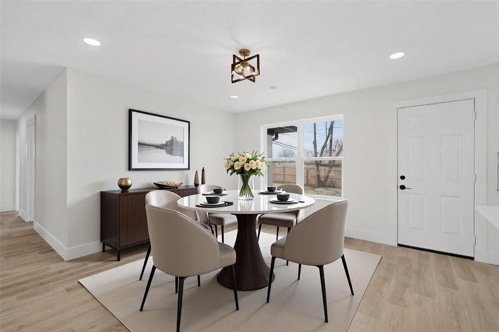 MODERN ELEGANCE meets TIMELESS CHARM! This stunning transformation of an enchanting home is sure to capture your heart!! EVERY room has been meticulously upgraded with a minimalist design, featuring luxury vinyl flooring throughout, new LED lighting & ceiling fans, doors and hardware, fresh interior and exterior paint, high-end fixtures, and a linear fireplace that adds a touch of sophistication. Step into the beautifully remodeled open concept kitchen featuring quartz countertops, stylish backsplash, stainless steel vent-a-hood and appliances including 6 burner gas cooktop with grill, gold pot filler, double convection oven, shaker style 48 inch cabinets with soft close doors & drawers with gold pulls, large island and gold pendant lighting! Completely remodeled bathrooms where modern finishes create a luxurious and spa like atmosphere--You'll never want to leave home! FLEXIBLE FLOOR PLAN: The 4th bedroom and media room are interchangeable—other potential uses are as an exercise room, home office or kids playroom. Nestled on an OVERSIZED corner lot, with mature trees, this home offers both ample space for kids and pets to play, and a new 8' privacy fence for a pool and to entertain on your new deck! A sizable outdoor shed is easily accessible for all your storage needs. More upgrades include new 30 year roof, energy efficient windows, rain gutters, upgraded attic insulation, electrical panel, garage door opener, garage epoxy floor, plus a full size utility room! Conveniently located, just minutes from major highways, three parks, shopping centers, the University of North Texas, a hospital, highly acclaimed Richardson schools, and Canyon Creek Country Club and Golf Course-you'll love the blend of convenience and practicality. Don’t miss the chance to see this remarkable transformation. 1 percent of loan amount offered back to buyer for closing cost or lower interest rate! Give your loved one the peace of mind this home offers.