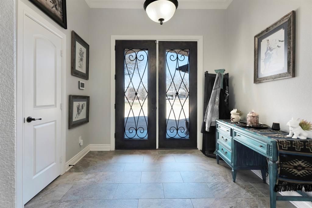 From the moment you arrive, stunning brick & stone architecture paired with dramatic dual iron entry doors set the tone for the luxury that awaits inside. Perfectly positioned along the 4th fairway, this beautifully renovated home offers the rare combination of refined interiors & resort-style living-all without lifting a finger, because the work has already been done for you. Inside is a light-filled, open-concept layout where the living, dining & kitchen spaces flow seamlessly, designed with entertaining in mind. Arched walkways, soaring windows, LED lighting & a clean neutral palette create a sophisticated yet welcoming atmosphere that suits any style. The kitchen features crisp white cabinetry, granite counters & two pantries for all your hosting essentials. A bright picture window above the sink ensures the chef never misses the view while guests float between the indoor living spaces & the outdoor oasis just beyond the large rear windows overlooking the pool & golf course. Oversized primary suite, offering generous space, spa-worthy ensuite & walk-in closet that is honestly the stuff of dreams. Also on the main level, you'll find a versatile game room (or additional bedroom), full bath, pool bath & laundry room-making it effortless to host overnight guests & pool parties alike. Upstairs, 2 more generously sized bedrooms & a full bath provide the perfect private retreat. Outside, your personal paradise awaits. The fully fenced, landscaped yard showcases a sparkling pool with waterfall features & massive covered porch with beautiful stained wood ceilings perfect for al fresco dining. A two-car or RV tandem garage, golf cart garage & additional storage room complete this property. Life in DeCordova Bend Estates feels like a year-round vacation with golf courses, tennis & pickleball, volleyball, lake access & vibrant clubhouse. Just hop in your golf cart & go! If you've been waiting for a home that was made to bring people together — this is the one. Come see it!