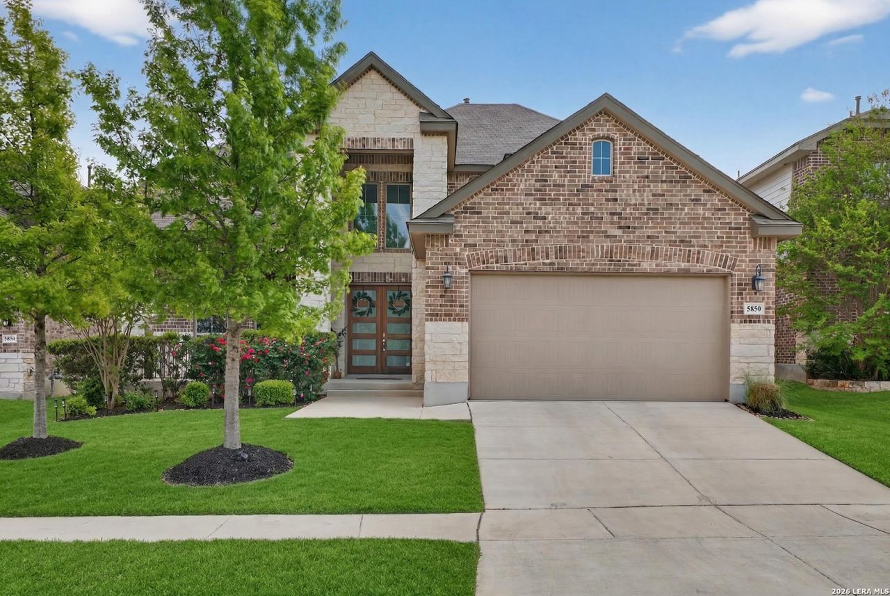 Experience elevated living in this exquisite DR Horton Emerald Series home located in Alamo Ranch. Designed with both style and functionality in mind, this home features soaring ceilings, expansive windows, and a bright open-concept layout that immediately sets it apart. The kitchen is a true centerpiece, offering an oversized island, granite countertops and stainless steel appliances all flowing seamlessly into the main living and dining areas. The first floor includes a spacious primary suite and a secondary bedroom with full bath, ideal for guests or a private office, along with a conveniently located laundry room. Upstairs, youll find a versatile loft/game room and a dedicated media room complete with theater lighting and pre-wiring for sound and entertainment, with potential to convert into a 5th bedroom. The primary suite offers dual walk-in closets, while thoughtful details like a window in the upstairs closet provide natural light in unexpected spaces. Step outside to enjoy a covered front porch and a spacious backyard with a covered patio perfect for relaxing or entertaining. Additional features include modern double front doors, 8-foot interior doors, upgraded fixtures, blinds throughout, a finished garage, water softener, programmable sprinkler system, and multiple attic storage areas. Conveniently located near shopping, dining, and entertainment, including H-E-B, Costco, and the Santikos Casa Blanca Theater, with nearby parks and easy access to major highways. From its elevated design to its functional layout and standout upgrades, this home is truly a step above the rest.