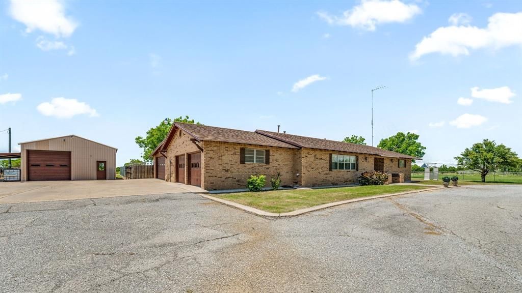 Discover an opportunity to own a spacious and versatile 3,416 sq. ft. home on 7 acres just outside the city limits of Chillicothe, TX. Built in 1969, this 3-bedroom, 3.5-bath brick home combines vintage character with incredible functionality—featuring multiple living areas, abundant storage, and a flexible layout ideal for both everyday living and entertaining.Inside, you’ll find a large family room with bar seating, a dedicated party room, game room or basement, a private indoor spa room, and a huge 4-car garage with additional workshop or storage space. The well-appointed kitchen includes generous cabinet space and connects to an open-concept living and dining area. The spacious primary suite features two separate vanities and walk in closets.The property includes both city and well water, and a large metal shop with electricity provides excellent space for projects, or storage. The option to purchase an additional 42± acres makes it perfect for expansion, livestock, or investment.