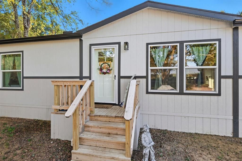 Welcome to this 2024-built manufactured home offering modern comfort and country charm. Featuring 3 spacious bedrooms and 2 full bathrooms, this home provides a functional split-bedroom layout with an open-concept living, dining, and kitchen area—perfect for both everyday living and entertaining. The kitchen is a true highlight with a large island for extra seating and prep space, plus a dedicated spot ideal for a coffee bar or beverage station. The home provides ample storage areas, as well as walk-in closets in every bedroom. The seller has added full gutters onto the home. Sitting on just under 2 acres of land, there’s plenty of space for outdoor activities, gardening, or simply enjoying the peace and privacy of your own property. The owners added full gutters around the whole home shortly after purchasing. The home is in great condition, move-in ready, and designed for easy living with contemporary finishes and country lifestyle. Whether you’re looking for your first home or to move to the country for more privacy, this property blends the convenience of modern living with the freedom of extra space.