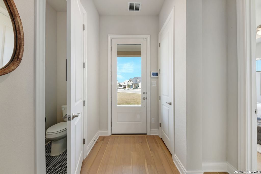 Now offered at a new price, this rare walkable Town Creek home places Downtown New Braunfels just minutes from your front door. Located in one of the areas most desirable low-maintenance communities, you can walk or take a quick 90-second golf cart ride to historic downtown, the Comal River, festivals, live music, dining, coffee shops, and boutique shopping. An open green space park directly across the street enhances the setting, offering added breathing room, neighborhood charm, and a peaceful place for morning walks or evening relaxation. Built by Wes Peoples, this modern two-story home blends quality construction with an easy lock-and-leave lifestyle - ideal for a second home, full-time residence, or those seeking convenience near it all. Inside, soaring ceilings and an open layout create a bright, welcoming space enhanced by large windows and warm wood flooring. The kitchen is designed for both entertaining and daily living, featuring quartz countertops, abundant cabinetry, stainless appliances, gas cooking, and a large island with bar seating. The first-floor primary suite offers a private retreat with dual vanities, walk-in shower, and spacious closet. Upstairs, a flexible loft provides additional living space perfect for an office, media area, or guest retreat, along with two secondary bedrooms and a full bath. Outside, the private fenced yard allows for outdoor enjoyment without heavy maintenance, while the tandem-style garage accommodates two vehicles. With modern construction, true walkability, open green space views, and newly improved pricing, opportunities like this so close to Downtown New Braunfels are increasingly rare. This home offers a lifestyle centered on convenience, connection, and everyday access to everything that makes New Braunfels special.