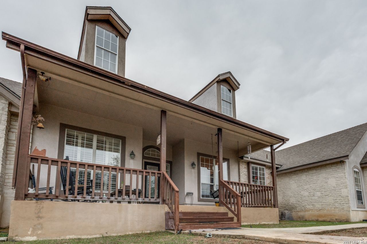 Located in Rim Rock Ranch outside of Bulverde, Tx, this beautiful 4 Bedroom 2 1/2 Bath home on 3 acres features high ceilings, engineered hard wood floors, fireplace and formal dining room. Large, primary suite includes full bathroom with separate tub and shower, double vanities and walk-in closet. Back yard has a recently resurfaced in ground pool, flagstone patio, hot tub and pergula perfect for entertaining. There is plenty of space to park vehicles with the oversized 3 car garage & carport. Metal building with electric roll up door would make a great workshop or additional storage. Attic elevator in garage makes storage easy. Numerous, mature live oak trees cover this 3 acres. Convenient to Hwy 281 & Hwy 46. Preferred Comal ISD schools.