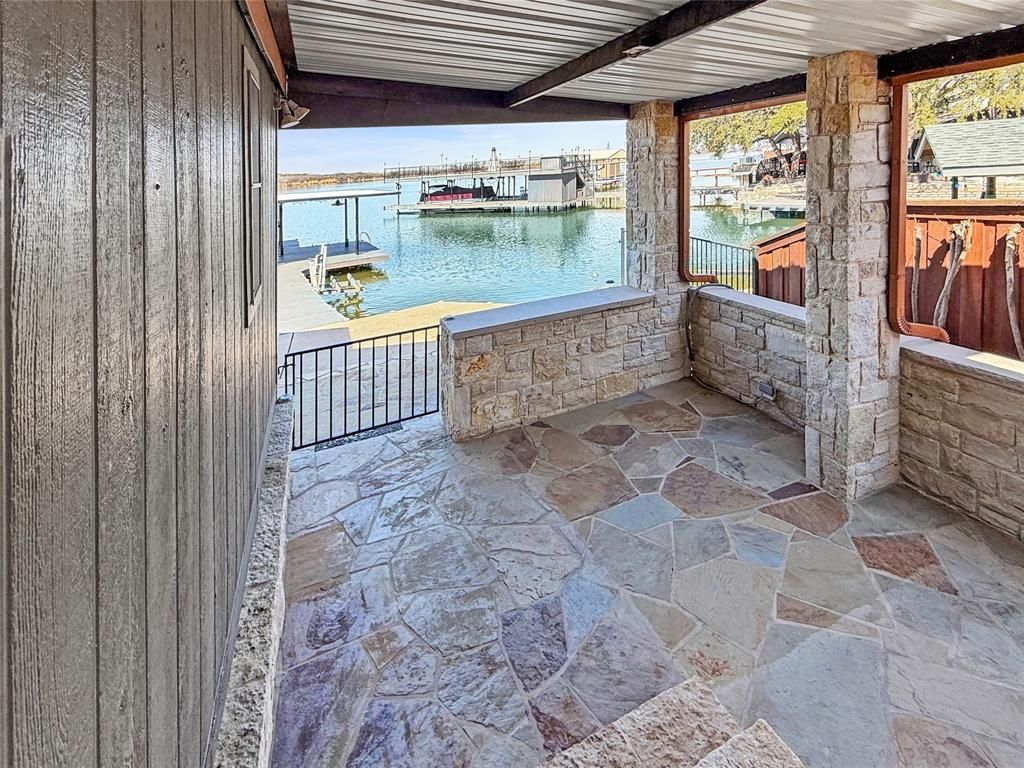 Enjoy comfortable lakefront living at 6505 Christa Court in Blue Water Shores on Lake Granbury. Positioned at the corner of a canal and the main body of the lake, the property offers open water views and direct access for boating, fishing, and water sports. The covered dock is equipped with a boat lift and two jet ski lifts, making it easy to get on the water at a moment's notice.Inside, the home features an open layout with vaulted ceilings and updated finishes. The kitchen includes granite countertops, an island, breakfast bar, dual sinks, and ample cabinetry. The primary suite offers a custom closet system and a spacious bath with dual vanities, garden tub, and separate shower. A covered deck and patio overlook the water, creating a practical outdoor space to relax and enjoy the setting.